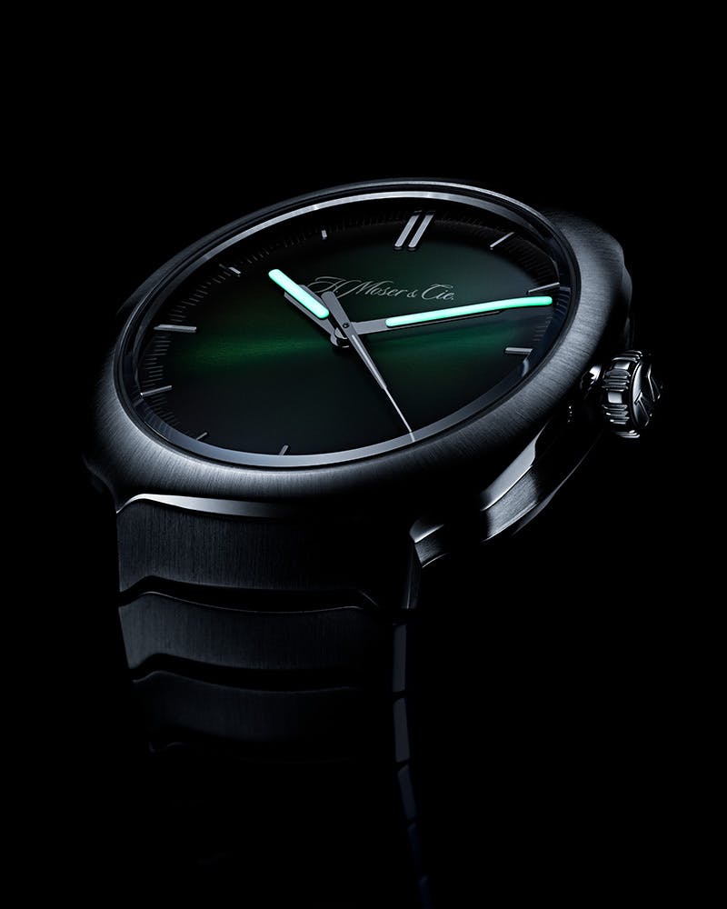 If you are looking for a watch that stands out from the world of traditional sports watches, we've got a watch for you. The H. Moser Streamliner Centre Seconds Matrix Green doesn't look like any of the other stainless steel integrated bracelet watches that have been trending in 2019 and 2020. It features a time-only configuration and a brilliant green fumé dial. The stainless steel integrated bracelet sports watch can often be full of designs that are certainly iconic, but often appear derivative.