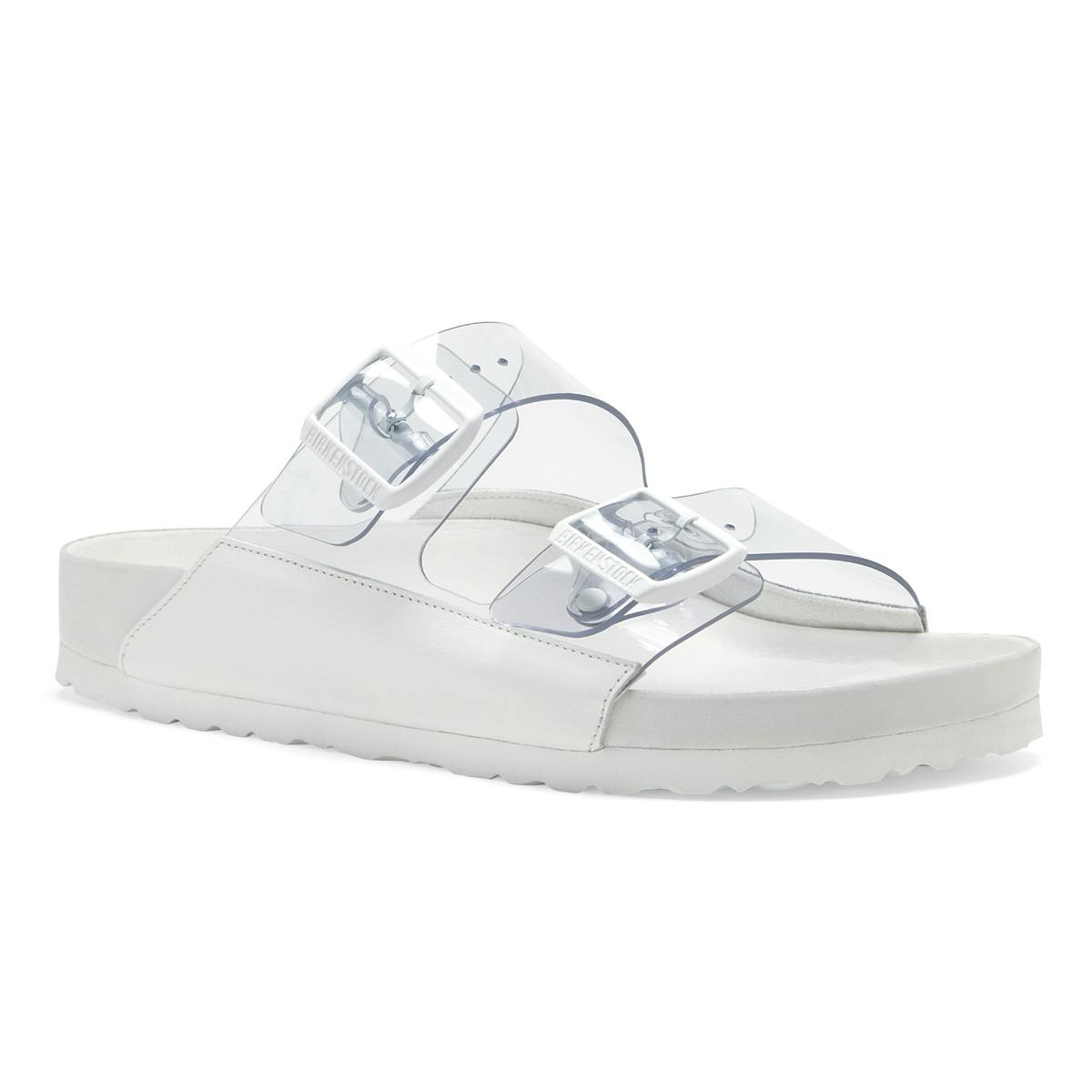 The pleasure of a Birkenstock is in its sheer unassuming wearability, so when Blahnik glitzes it up with opulent cowhide and PVC straps that only partially obscure the Arizona's shape, it's a tribute rather than a revision.