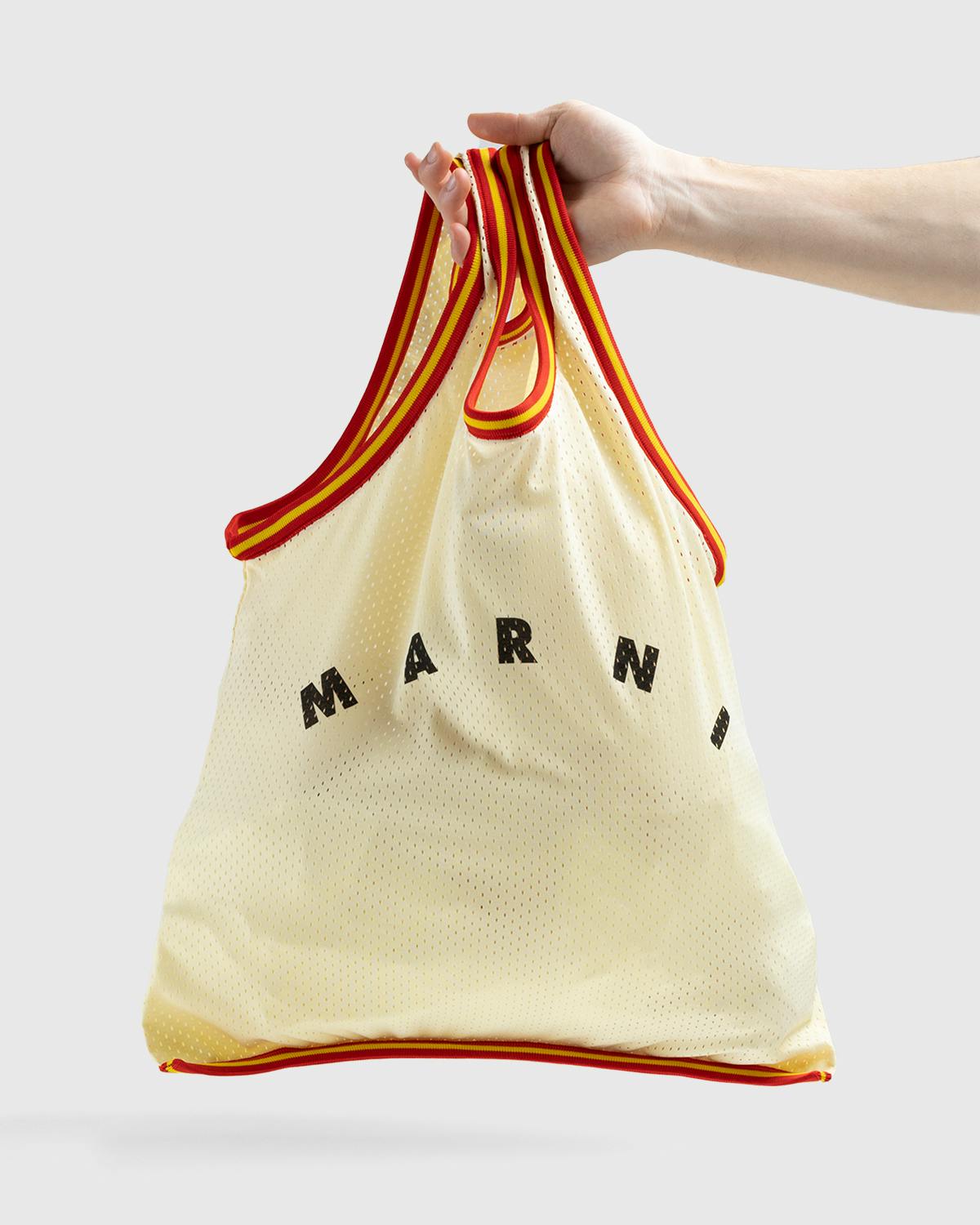 It's slightly surreal to see what looks like a top being used to carry around someone's possessions and that's only exaggerated by the classic basketball jersey style that Marni has gone for.