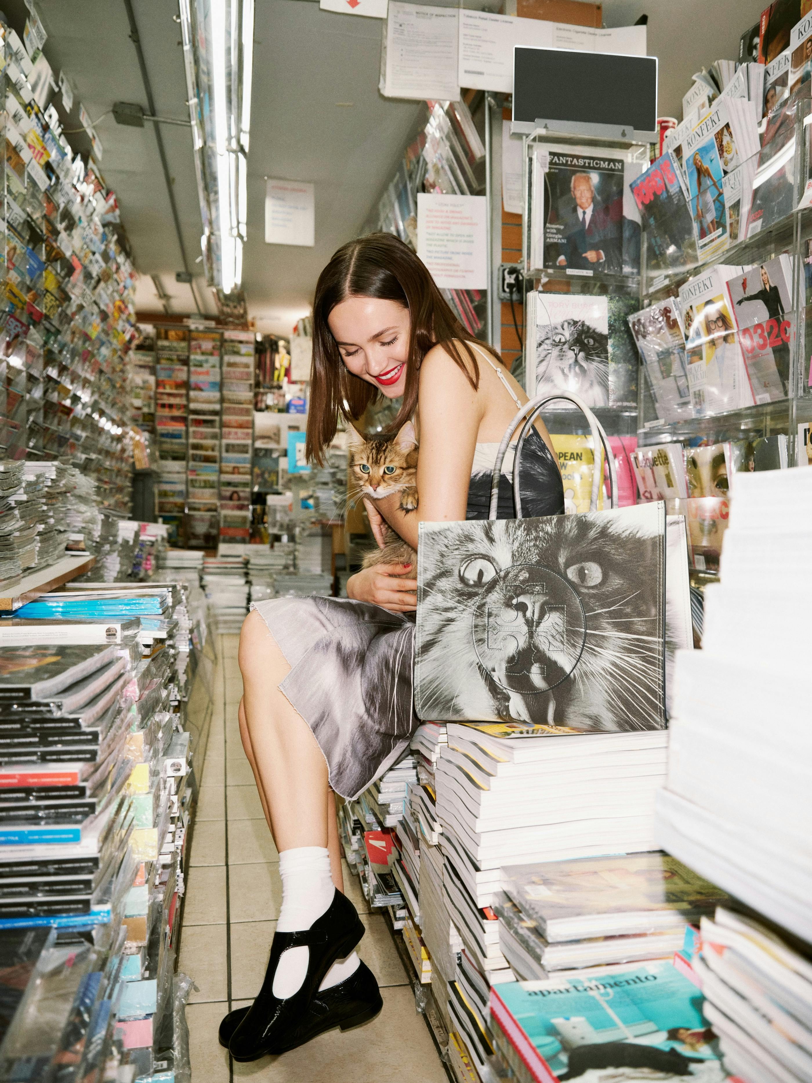 Starring another carefree kitten, Dolly the Cat, as the house’s latest muse, the campaign follows Dolly on a trip to a bodega in the Concrete Jungle, capturing her mid strut with much whimsy and few hang-ups. As they say, like pet, like owner. Maude Apatow, too, joins in on the fun, posing alongside her darling kitten, tossing aside the reserves of glamour for a posh prowl in the city.