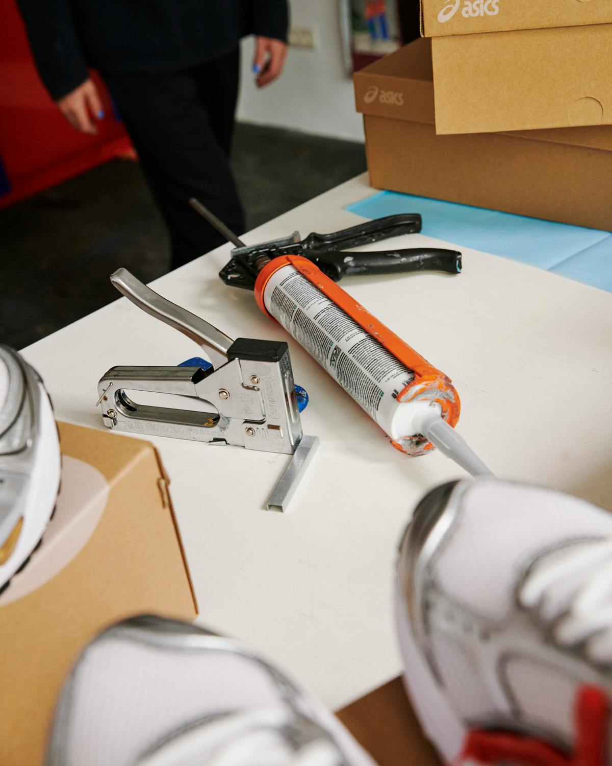 All the more reason ASICS tapped Buck to align with their Crafts for Mind, one of its overarching themes that emphasizes the importance of craftsmanship and attention to detail. The brand handed over 30 pairs of GEL-KAYANO 14’s for Buck to customize, as part of their ongoing partnership with local artists and creatives. ASICS will then sell the special edition shoes through Berlin’s Voo Store via an online raffle that goes live today, June 25, and donate the proceeds to a charity supporting mental health. Since Buck is German, they’ve opted for Deutsche Depressionshilfe, an independent non-profit foundation that helps provide assistance and resources for people needing support with mental health-related matters.