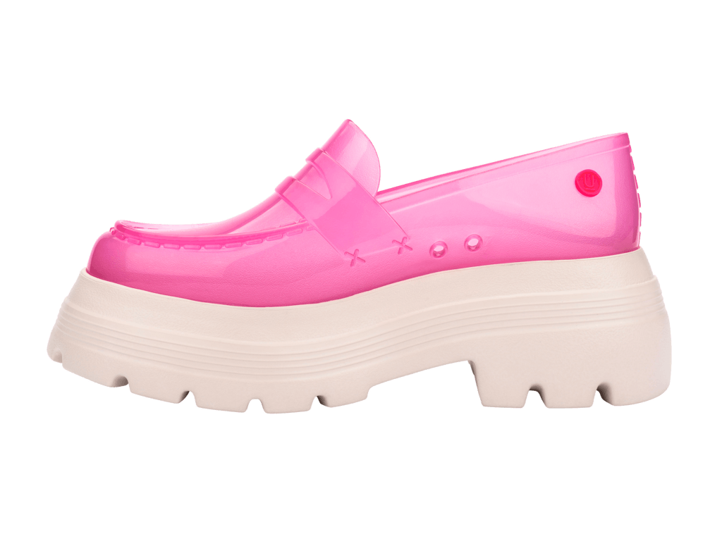 UNDERCOVER's Royal High loafer features gummy-like translucent uppers crafted from Melissa's renowned eco-friendly jelly material. The stacked loafer is then topped in four tasty color options, including vibrant pink and smoky shade, playing on the candy vibes.