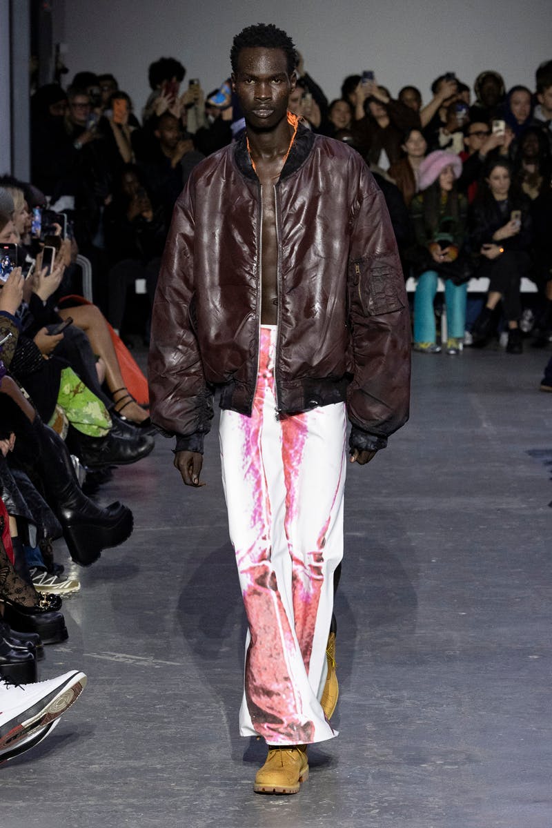 As previewed on Instagram, Mowalola's hand-print trousers also appeared in the presentation, alongside a mini skirt boasting the same trompe l'oiel concept.