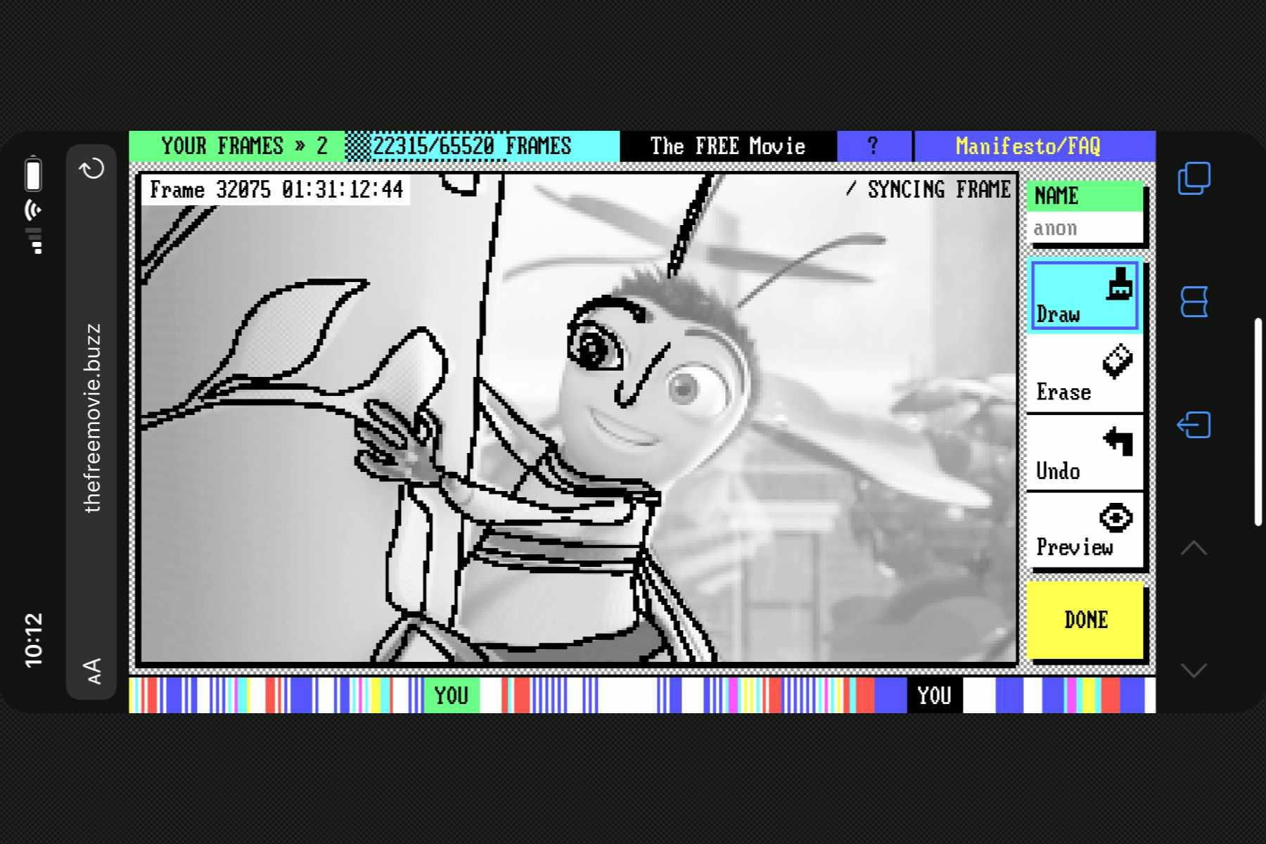 However, these massive joint efforts and MSCHF's Free Movie differ in that MSCHF's toolset encourages users to simply trace over the Bee Movie frames. No artistic talent required: all you gotta do is copy.