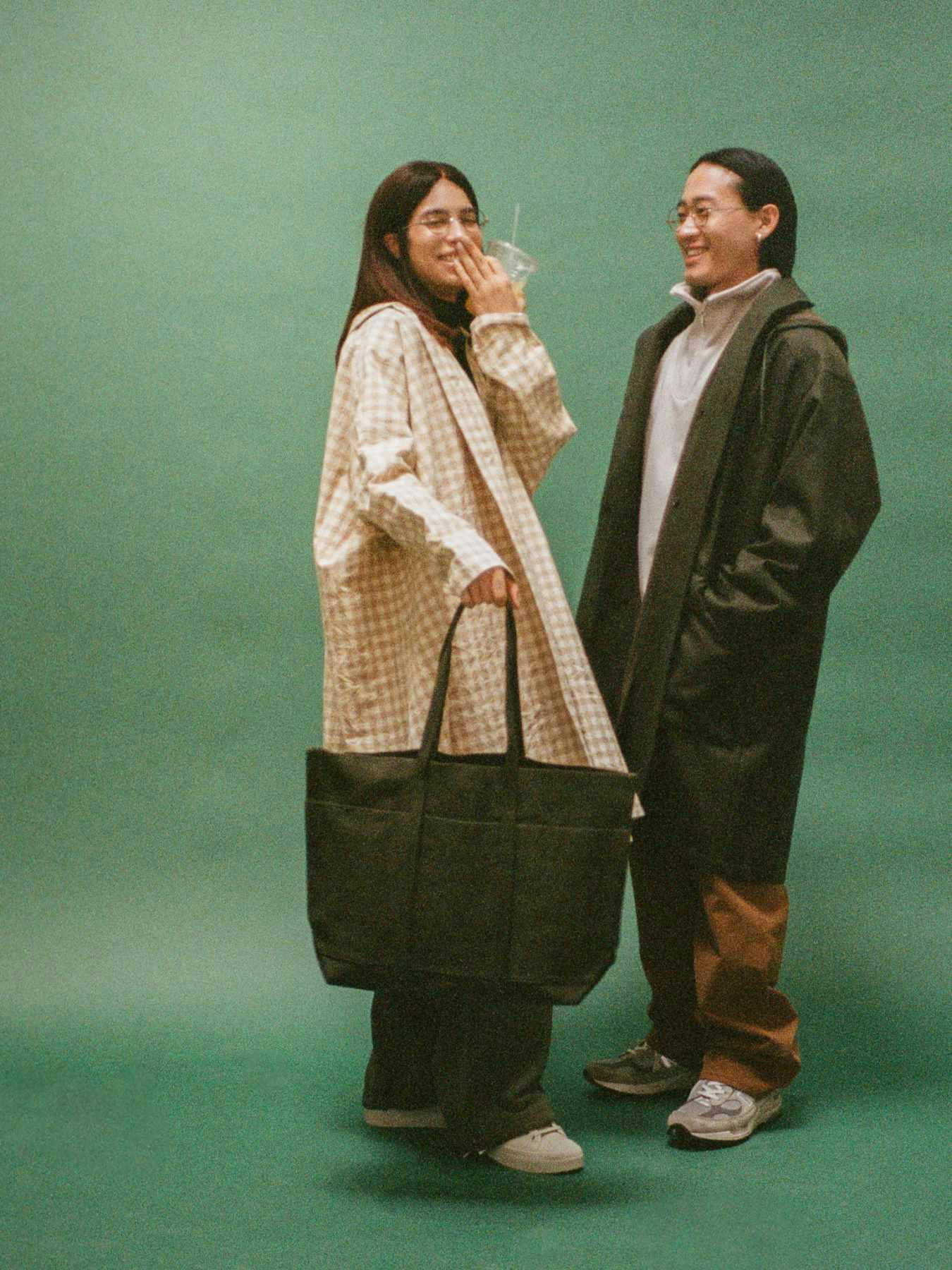 In one photo, the jewel tones of AURALEE's zippered hoodie grant additional vivacity to Unfil's opaline jersey set, demonstrating the powerful potential of pairing primary colors. Elsewhere, Toogood's twill Baker pants — my vote for best wide trouser ever made, BTW — anchor a vibrant orange canvas tote from Amiacalva.
