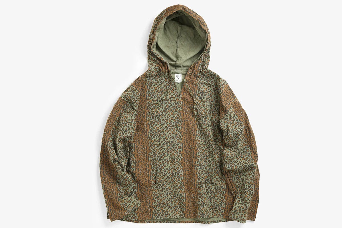 South2West8's oversized surplus staples definitely speak to how today's WFH silhouettes should look and feel. This out-there parka, with its contrasting leopard stripes, is definitely something straight out of Joe Exotic's “Hulk Hogan meets Lil Nas X” mood board.