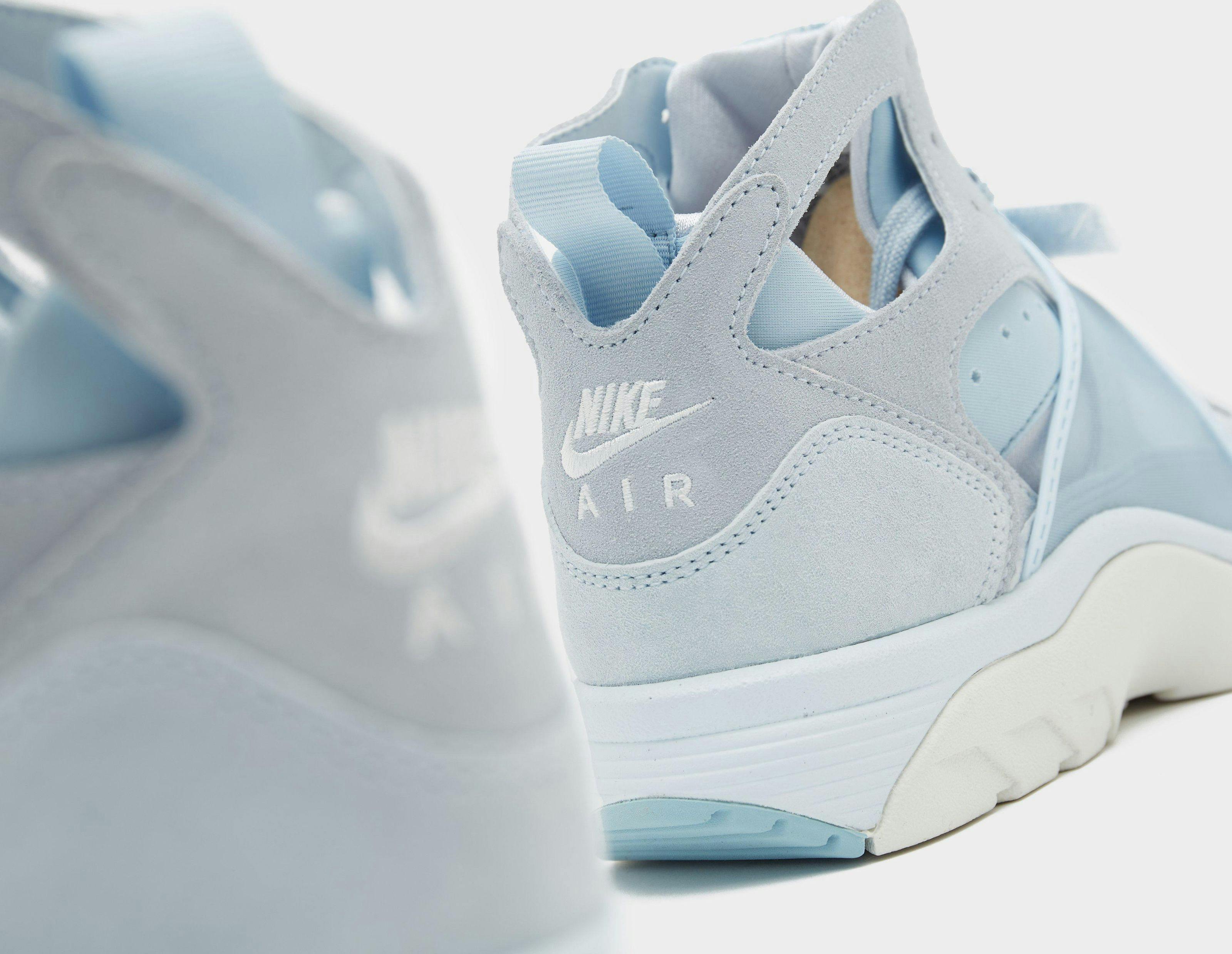 The Air Trainer Huarache offers up plenty of smooth textures throughout, plus some see-through mesh on the strap, which the delicate blue shade flawlessly highlights.