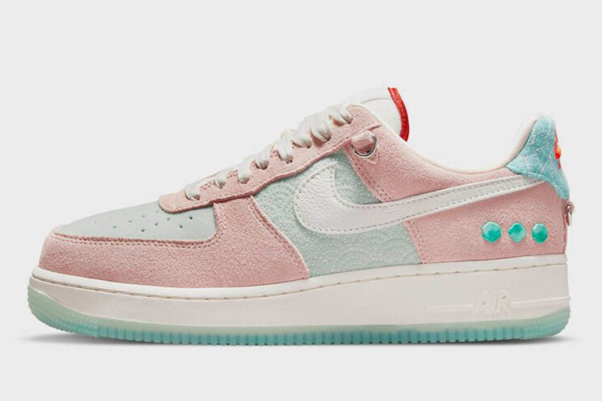 Last but not least is the Air Force 1 Low, which is far more simplistic than the other sneakers in the pack, yet still executes the pale jade and pink hues with finesse.