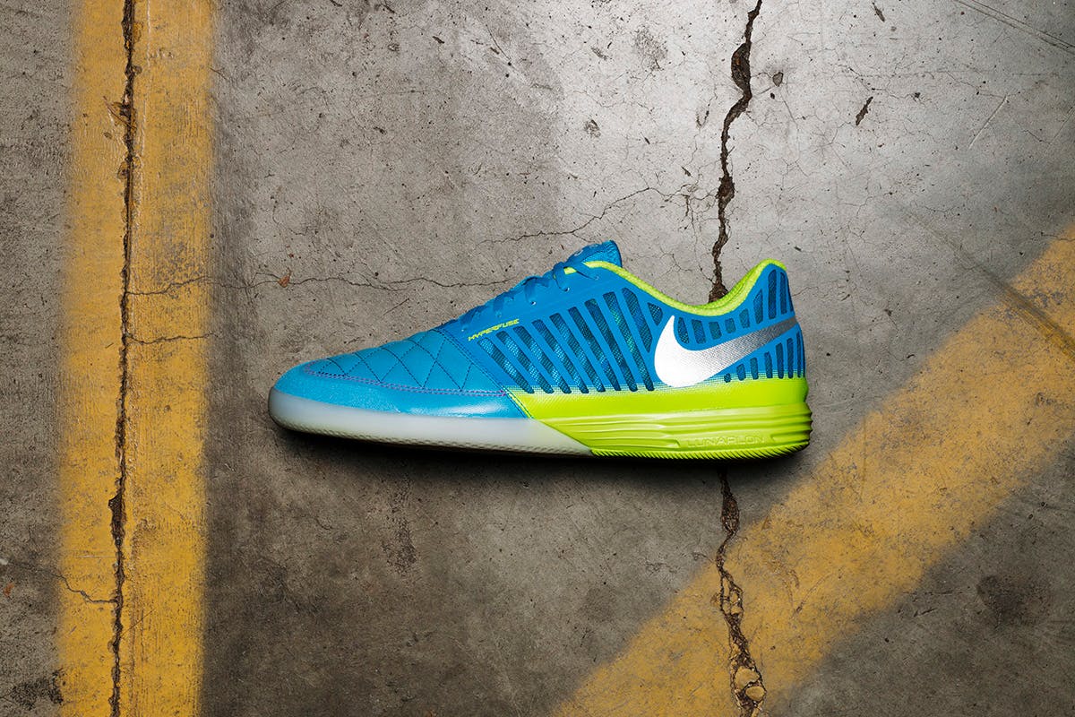 The Nike Lunar Gato II was introduced in Nike Football's 2013 FC247 collection alongside the Bomba Finale II and the Elastico Finale II. Each shoe was designed to "provide a balance of speed, control, comfort and precision based on varying court surfaces," said Nike. Specifically, the Lunar Gato II was geared towards a fast and dynamic game on all surfaces. The silhouette welcomed 33 fewer components than its predecessor, weighing in 16 percent lighter. Soft leather was used on the upper in order to improve the ball-to-foot feel and to also eliminate a break-in period. A contoured sock liner then improved the anatomical fit, while fused mesh panels locked down the midfoot to maximize lateral support.