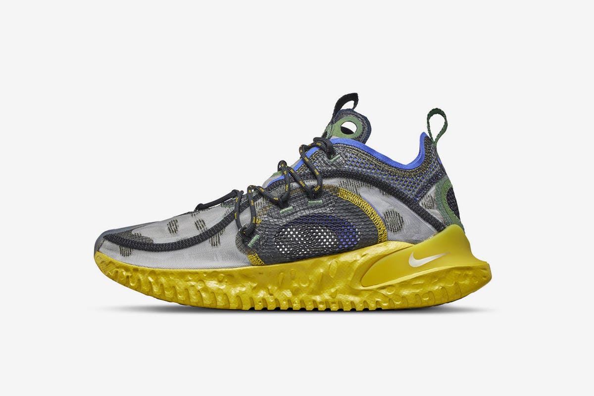 With Nike ISPA, the sportswear juggernaut introduces groundbreaking products designed to solve everyday problems. For Fall and Holiday 2020, these adaptive footwear silhouettes include the Zoom Road Warrior, Overreact FK, Overreact FK Sandal, Flow 2020, and Drifter, pictured in order in the gallery above.