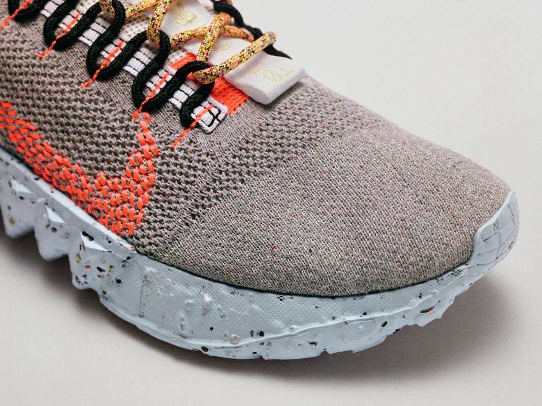 Key Features: Closures include laces, a slip-on, and Nike’s accessible FlyEase technology. The “Crater Foam” sole uses 15% Nike Grind rubber combined with 100% recycled ZoomX foam scraps for a lightweight feel with a rugged, kitbashed look. To top it off, everything about this collection—from materials, construction (no glue is used), and packaging—makes for the lowest carbon footprint score for Nike sneakers to date.