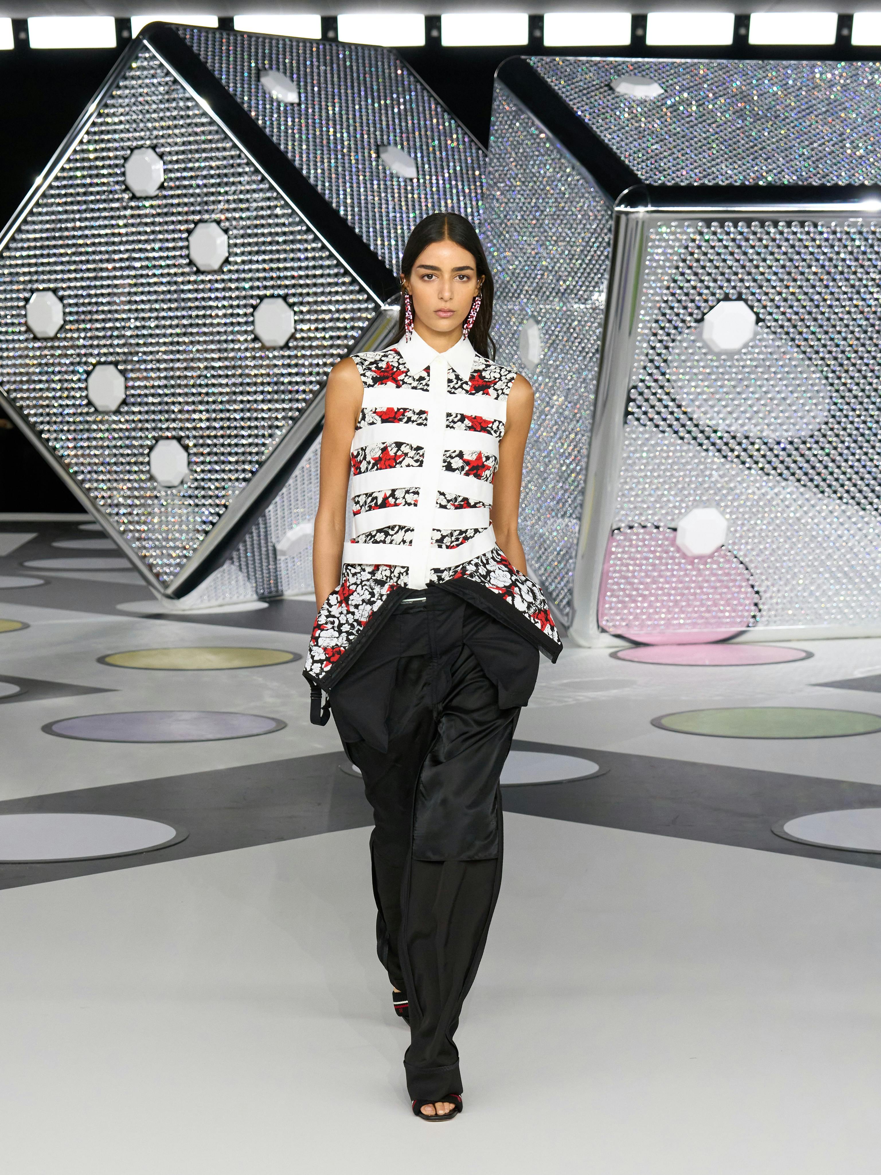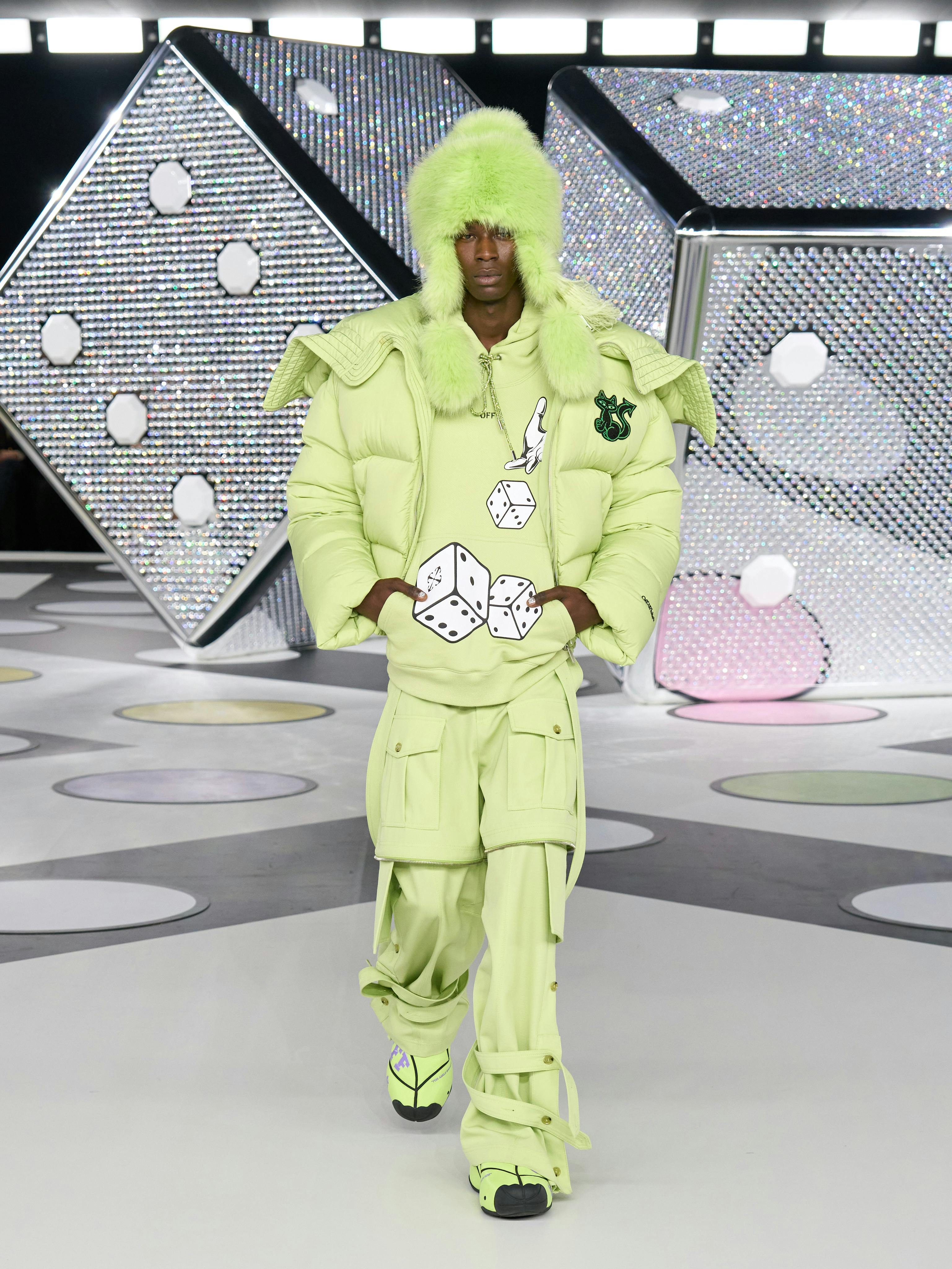 Like the models traversing spaces on its Ludo gameboard-turned-runway, the collection, too, was guided by a nomadic spirit. Dubbed “BLACK BY POPULAR DEMAND” (emphatic caps lifted straight off the show notes), Off-White™’s latest collection reflected on cultural cross-pollination in an increasingly globalized fashion circuit.