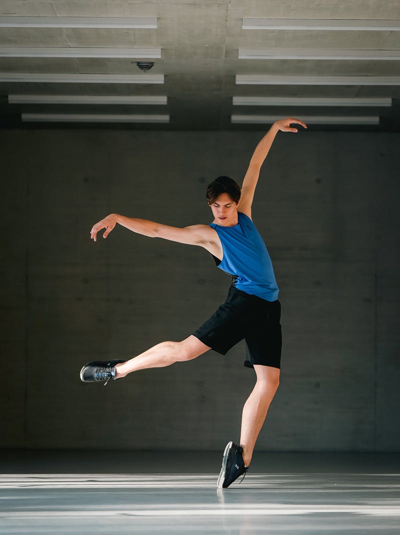 I’ve recently been in rehearsals for a theatre show coming to London's West End. Wearing On’s Cloud X 3 Shift has enabled me to look after my feet and calves as we have been doing lots of flips and lifts, landing heavy on the feet, and they have been protecting me from that. Also, with the gym wear, I can get through an eight-hour rehearsal and not feel like all of my clothing has been ruined from the sweat.