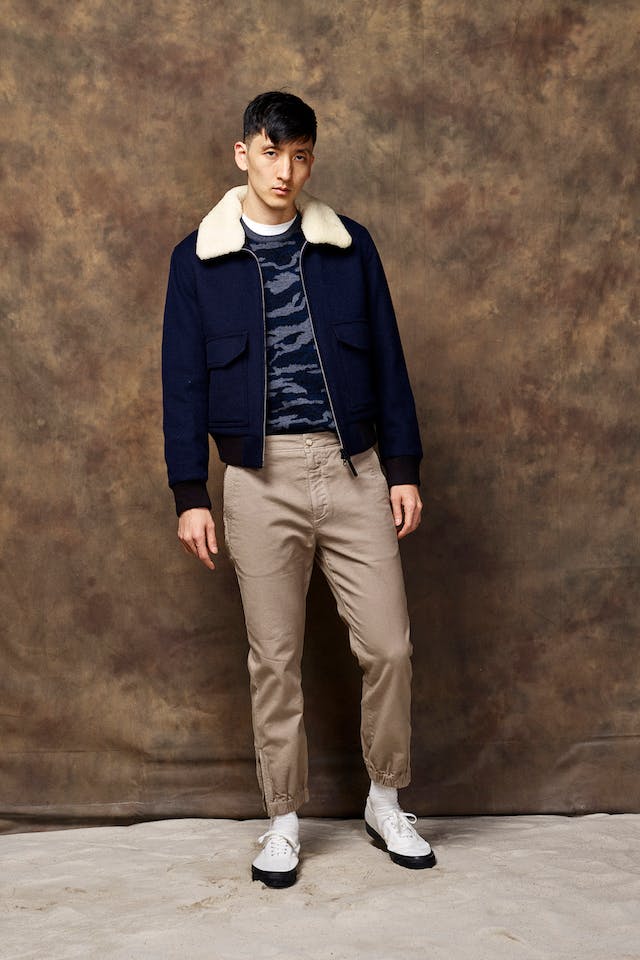 Other notable pieces include camel-colored/patterned topcoats, mini-cord shirting, artisanal patchwork pieces, shearling-collar bombers and more for sartorial juxtapositions, while the impressive color palette ranges from staple neutrals, darker solids to eye-catching bright hues and camouflage.
