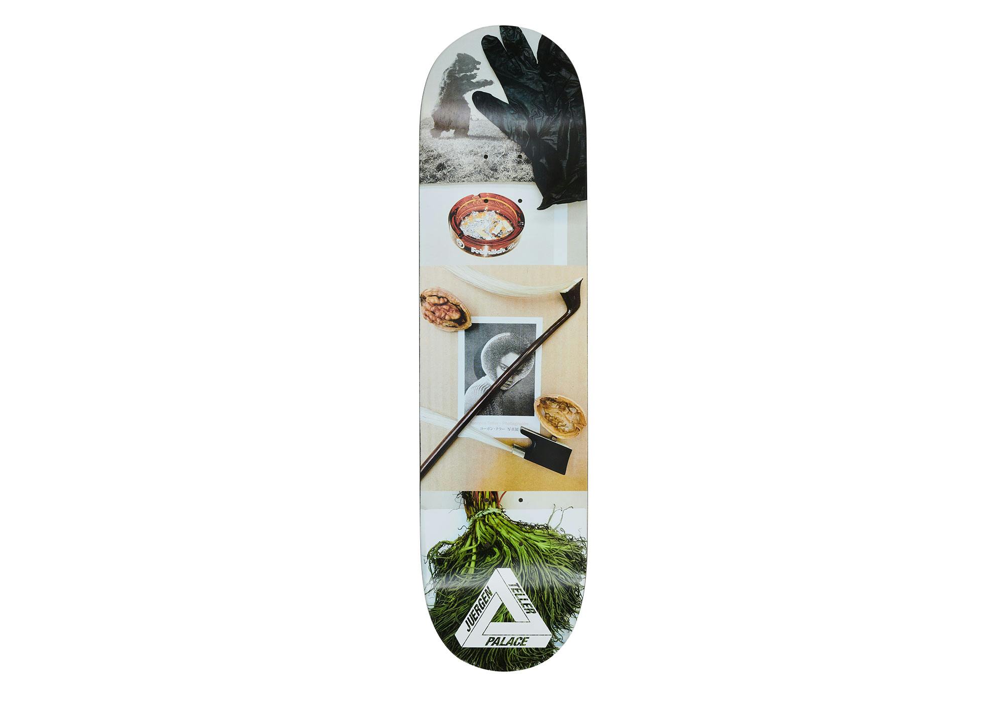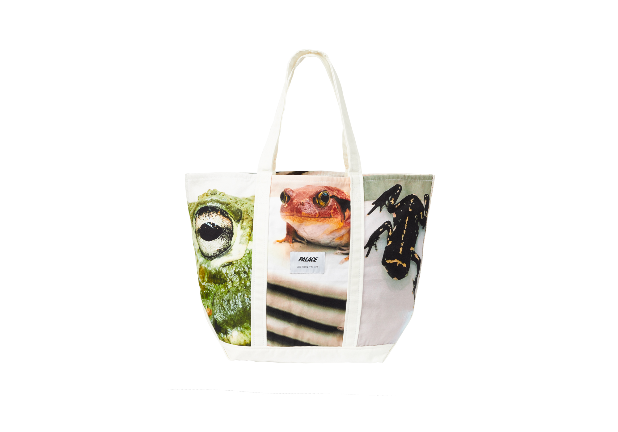 New work includes a collage Teller made during lockdown that shows up on a hoodie and skateboard. We also get images of frogs on plates ( a play on the English translation of the photographer's last name) and what Palace describes as "a nice photograph of a dog being washed in the sink :)" Finally, Teller gets his very own Tri-Ferg that reads "Juergen Teller Palace". Browse the collection above and head over to Palace to find out more.
