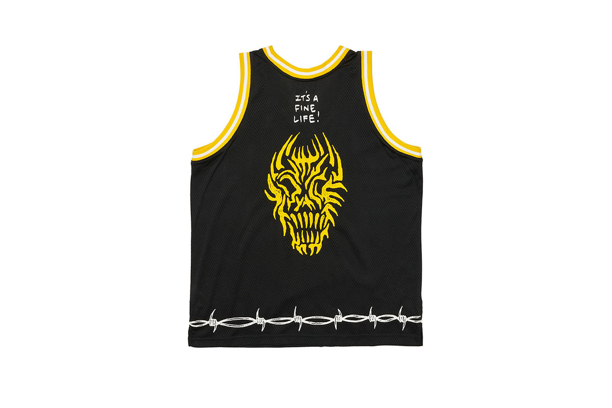 The collection features Gigilotti’s cute and occasionally perturbed hand-drawn illustrations across zip-up jackets, denim, button-up short sleeve shirts, hoodies, short and long sleeve tees, airtex basketball vests, caps, and denim bucket hats. The collection's distinctly LA flavor is offset with some British sentiments such as "FARE THEE WELL," "LONDON TOWN, "IT'S A FINE LIFE!", and poignantly, "IT'S PALACE YOU DICKHEAD.”