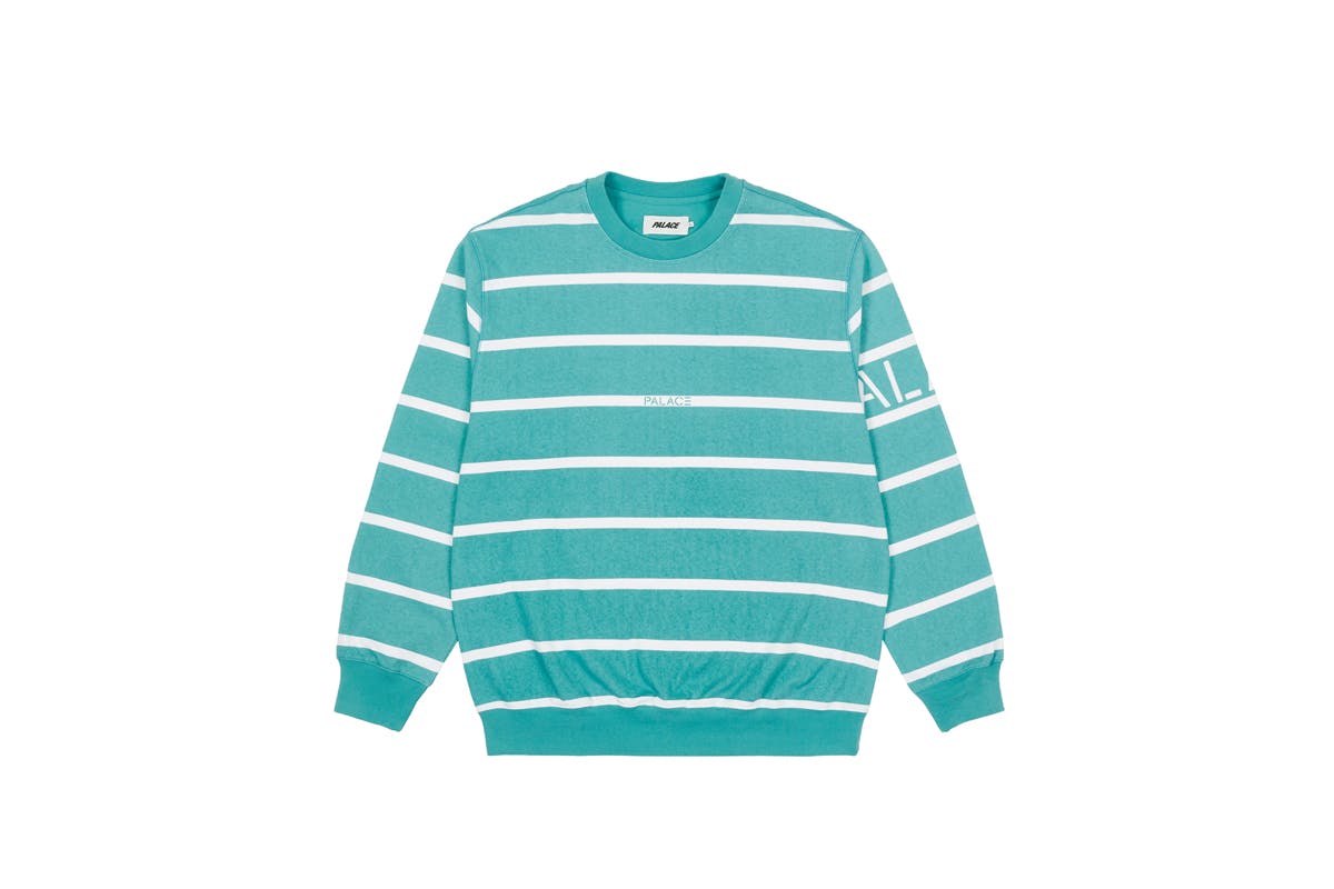 As usual, there's a nice variety of goods to be had from Palace, including the aforementioned striped sweaters and "PALACE ITALIA"-branded pullovers, complete with classic branding on the rear and the occasional bit of color-blocking. There are some slick tracksuits as well, realized in versatile burgundy, navy, and greenish hues with contrasting white piping and, again, rear Palace branding on the jackets. And if you don't wanna weigh yourself down with a tote bag, Palace has you covered with a slew of ever-divisive cargo shorts realized in over-dyed cotton.