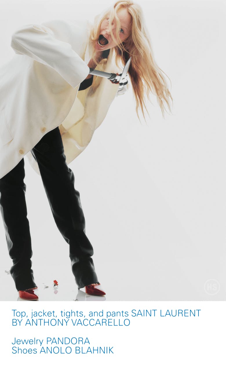Add to this a very public relationship: A few days after meeting him, Anderson married Tommy Lee from heavy metal band Mötley Crüe. In 1995, a tape of the couple having sex was stolen from their home and released without their consent. The event, Anderson tells me, “derailed her life, personally and professionally,” and, she explains, it still influences how people perceive her. It wasn’t until the release of her memoir and Netflix documentary in 2023 that she decided it was time to contend with the public again. “People stop me on the street sometimes and say, ‘Wow, Pamela, I used to hate you, but then I watched the documentary and decided you’re not actually bad,’” she says, adding, “It doesn’t hurt my feelings. I’m glad people are coming around finally.”