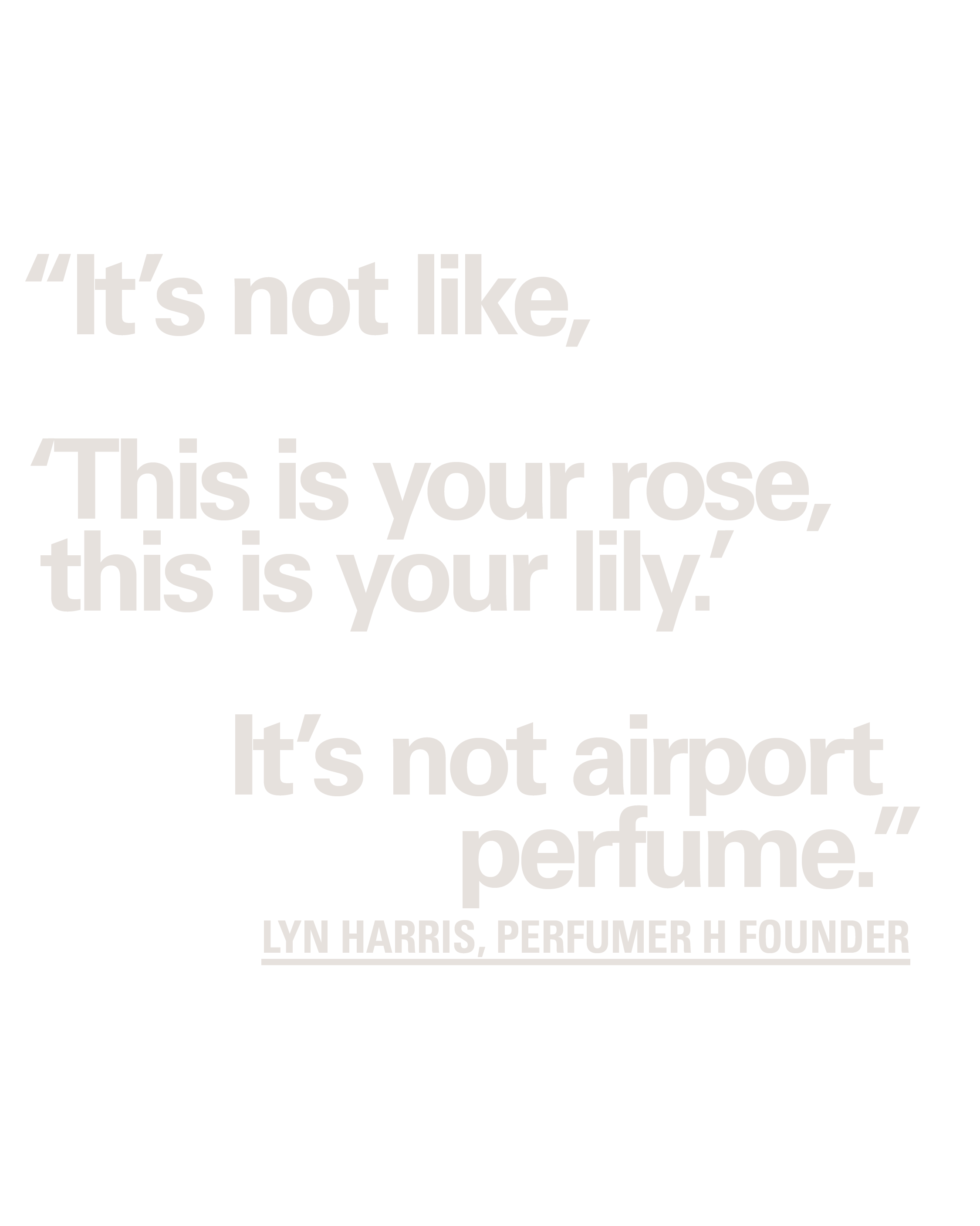 Harris knew what she didn’t want to do in her career: no household scents. No “detergents or soap powder. I just want to do fine fragrance and candles and a bit of skin care,” she says. “So that’s what I specialized in.”