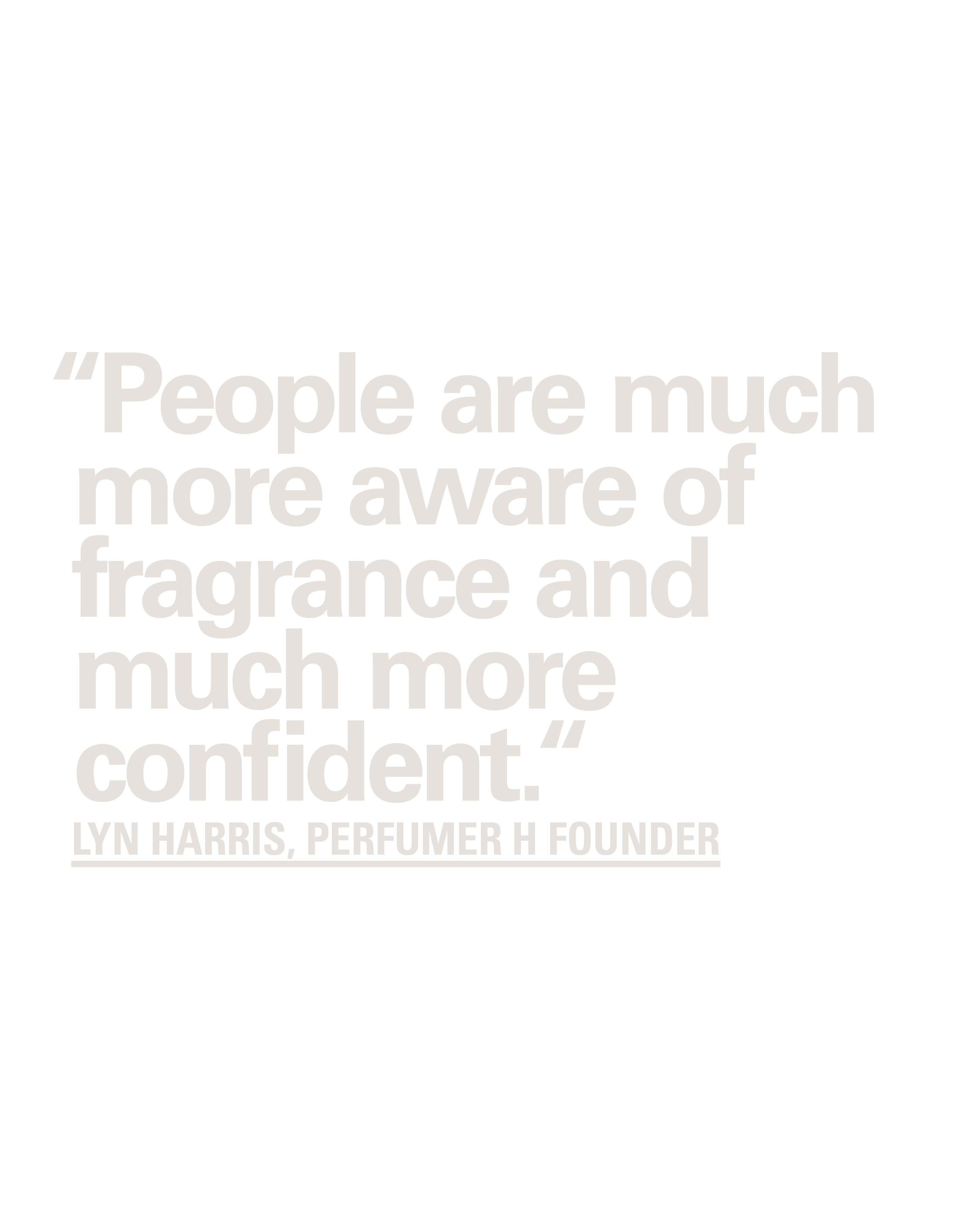 “Smell is our first sense. Subconsciously, we’re always smelling. We are animals, after all,” says Lyn Harris, the founder of the fragrance line Perfumer H.