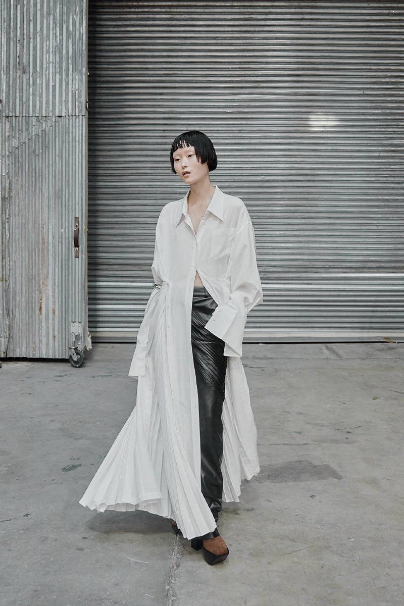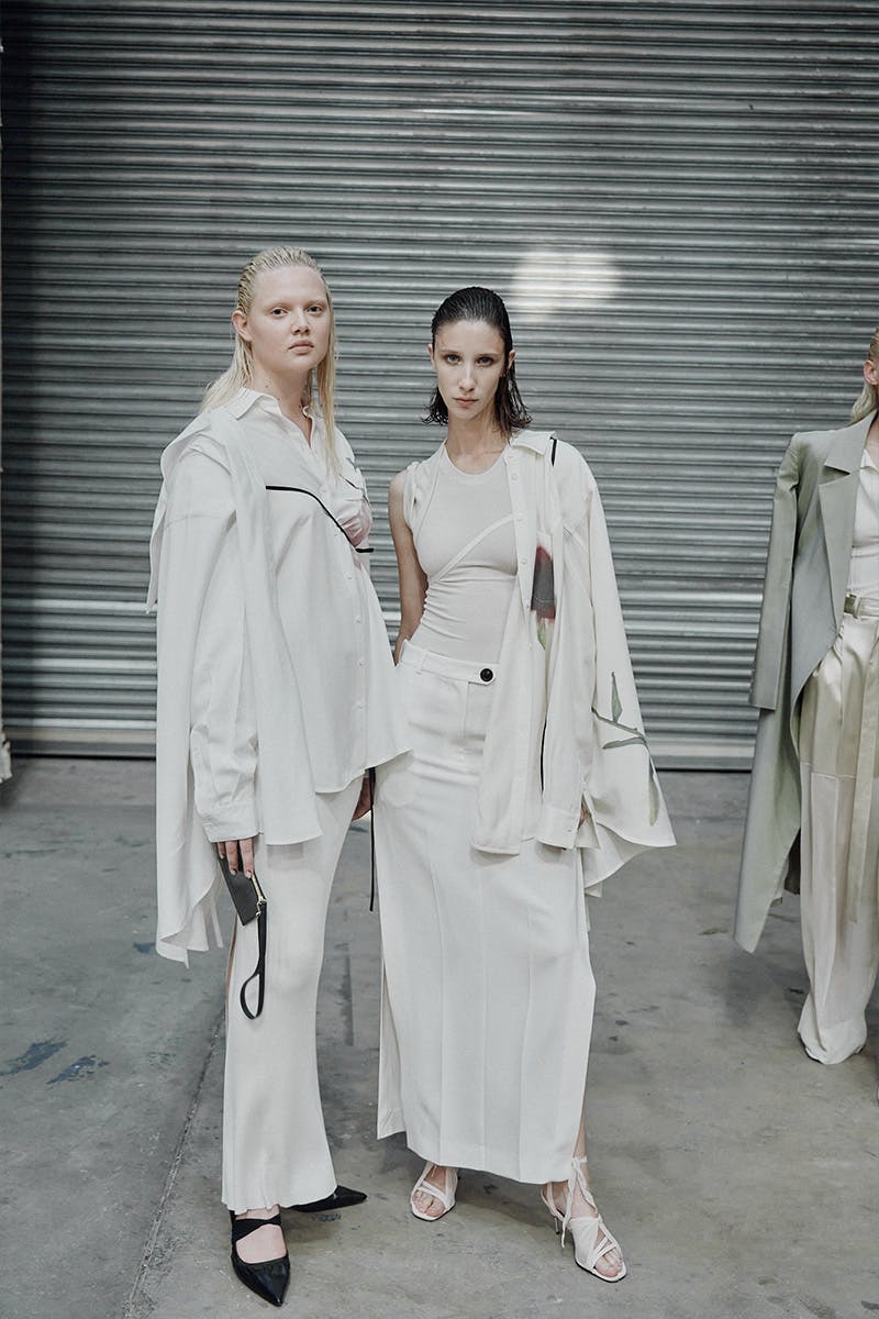 The designer's refined womenswear fluttered in the breeze that filtered through Brooklyn's Greenpoint neighborhood, a suitably subdued locale for Do's signature subdued apparel. Fading summer sunlight framed the clean lines on the runway, while the grungy "backstage" area contrasted beautifully against Do's unaffected aesthetic.