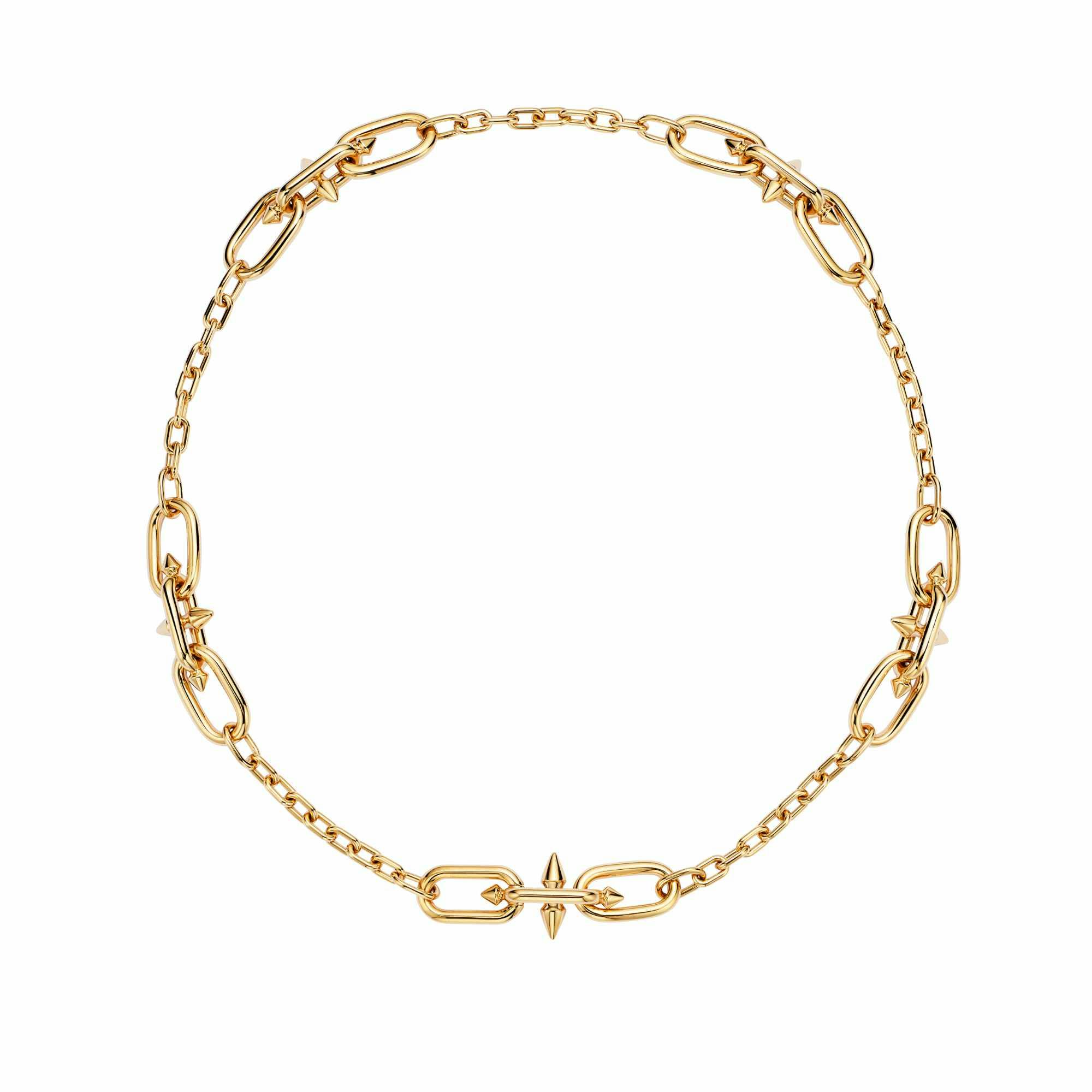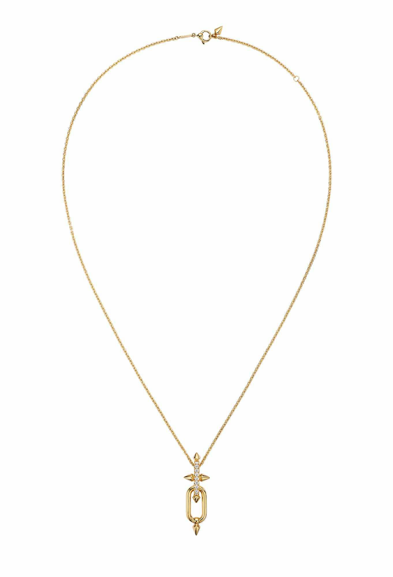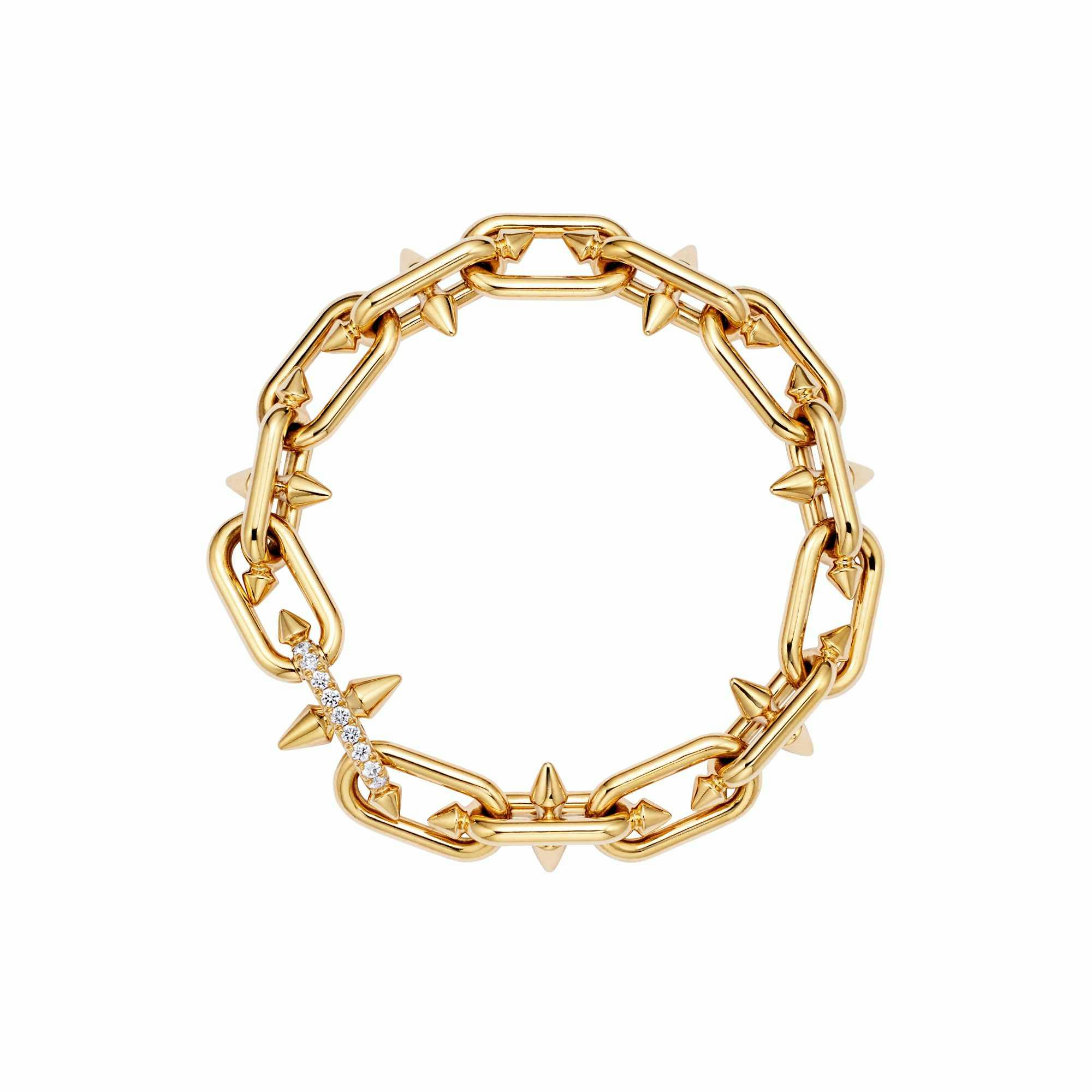 Instead, Pharrell has created ideal for daily wear but elevated by advanced design cues. The "spikes," the dusting of diamonds, the unexpected black color-blocking — it's all in service of a shape more substantial (literally) than any ordinary linked bracelet.
