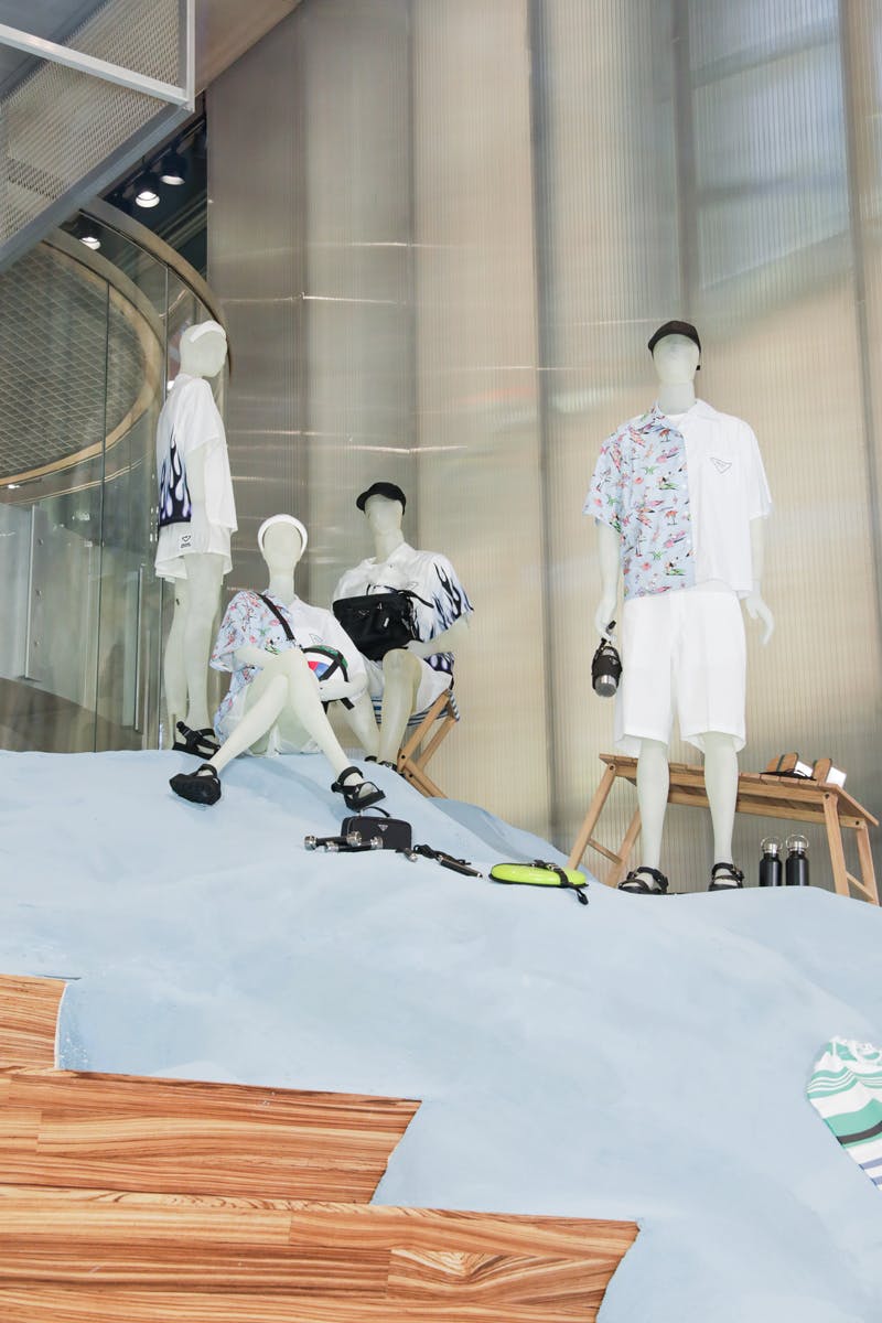 Prada Outdoor is at Prada's Broadway flagship until June 20, concurrently running at Neiman Marcus Northpark Dallas beginning June 8. Los Angeles' Beverly Hills Prada outpost rolls out the green carpet on June 14 before the Miami Design store receives the goods on June 24, all wrapping by the end of June or mid-July.