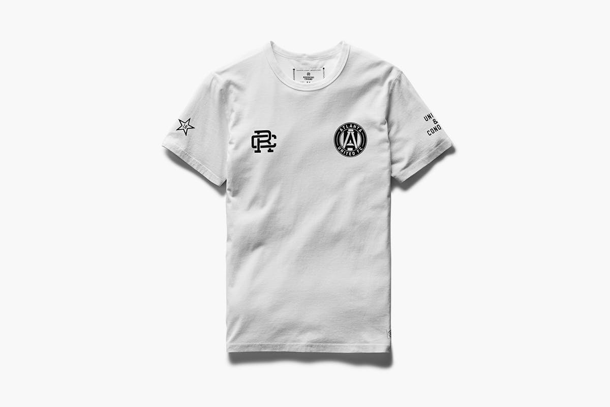 The three-piece MLS Champions Pack collection includes a pullover hoodie ($160) and sweat shorts ($110) made from mid-weight Terry, as well as a white T-shirt ($75) made from premium ringspun jersey.
