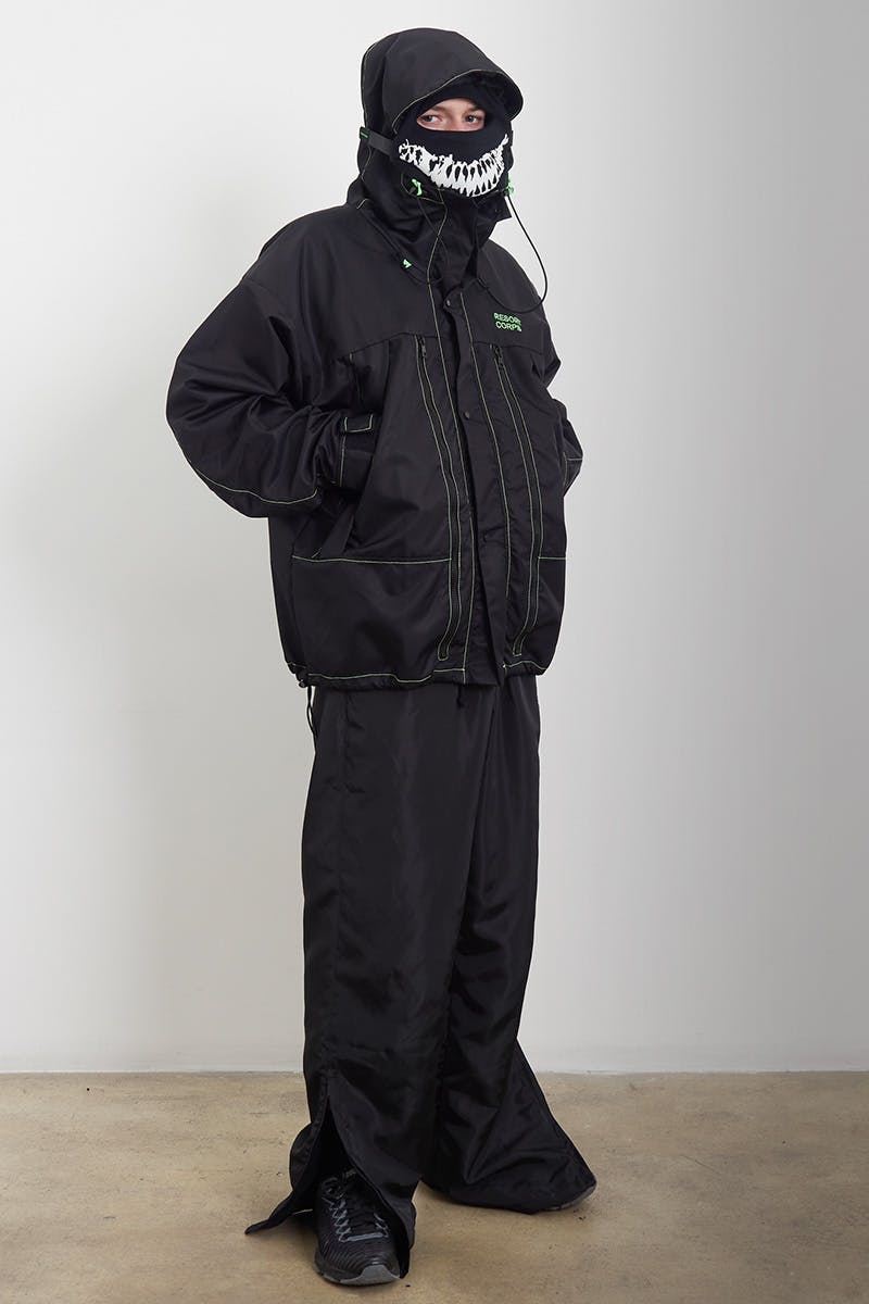 RESORT CORPS' founder Luca Modesti tells Highsnobiety that he was thinking about subcultures, or indeed the lack thereof in our post-internet society when forming the FW19 collection. The designs consider issues of lawlessness, freedom of thought, and cyber-criminality, echoed by the references to CCTV surveillance, and one particular T-shirt that points to the trappings of online group think with one loud print reading "THINK, WHILE IT'S STILL LEGAL".