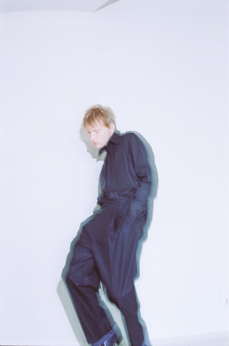 Key Pieces: The thick leather bags are a fashion-y yet appreciable daily driver, but the standouts are the Uncle trousers (wide, creased, exposed lining) and a new coat cut in matching navy.
