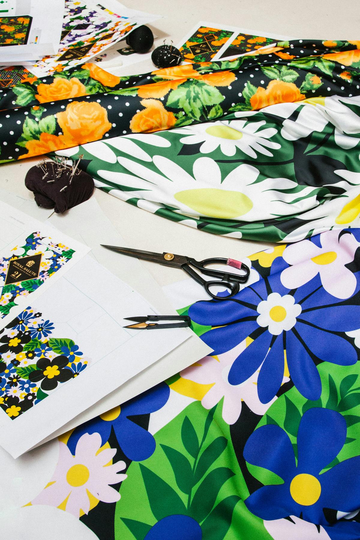 The floral theme of the collab ties together the capsule collection and the whisky bottles. Quinn elaborates on the relationship between silhouette and print: "I always find it interesting how the shape of a garment can dictate the mood of the print. I think the biggest challenge of the collaboration was getting the prints to wrap around the bottle. But once we'd had a few tries, it wasn't really a challenge—it was actually quite fun."