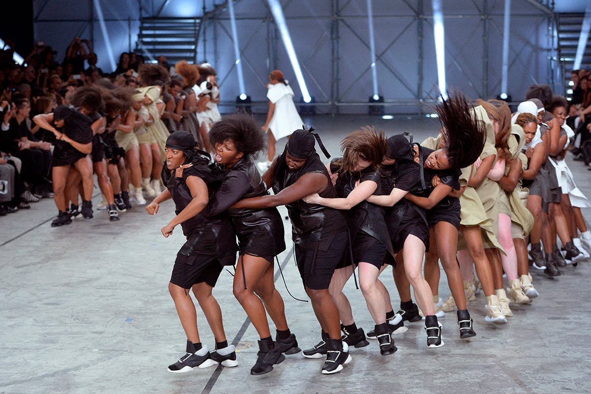 While the casting of the dance troupe seemed to break every rule in the fashion book, Owens stated that he was mainly challenging the fashion industry's sizeism. "I was looking around my studio in Italy and all of the women I work with every day...I was thinking, ‘I’m asking all of these nice ladies to work on all these skinny clothes and there’s something gross about that.’ We can take a break from these skinny models for once.” Rick's casting of step dancers raised salient points about an industry so obsessed with unrealistic standards of beauty - and made for an attention-grabbing performance fitting of his brutalist, brooding clothing.