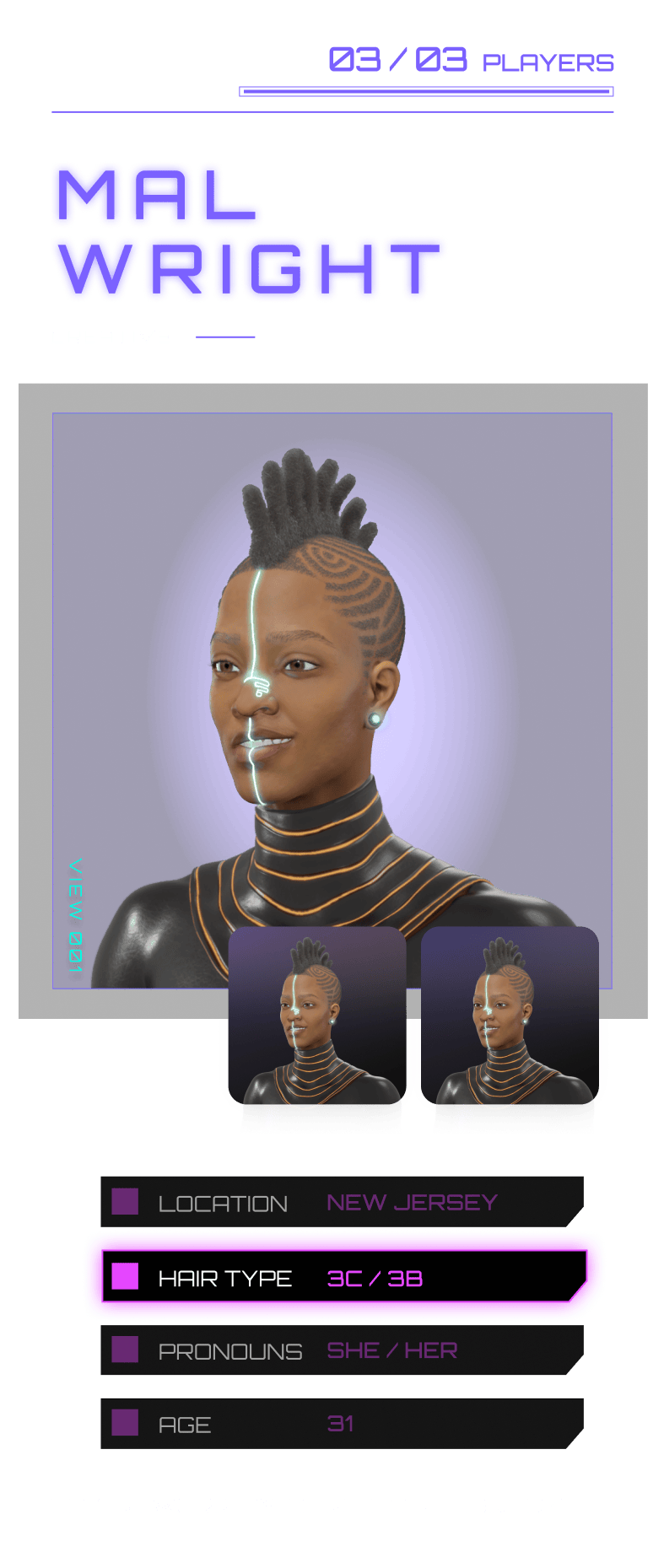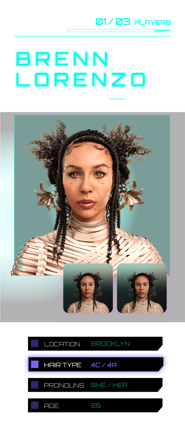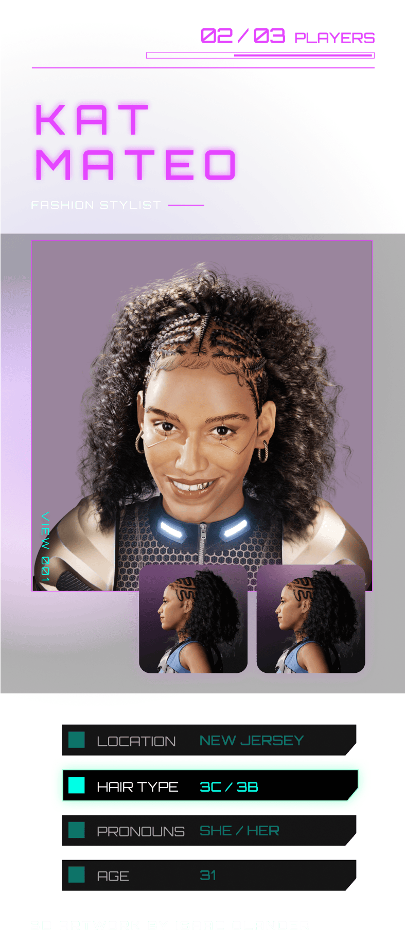 At age 12, Kat Mateo’s hair journey took a sudden, painful turn when a hairstylist cut off her pigtails, guided by her grandmother’s wish to relax her hair. “It felt as though they didn’t want to deal with my hair,” she shares. The experience left a lasting impact, deepening a sense of inadequacy in her tightly coiled strands that took time to unravel. Mateo’s path to self-acceptance came with learning to care for her curls herself, turning what once felt like a burden and shame into an honor. Her pixel-perfect persona reflects that evolution. "I wanted my avatar to show the beauty of my hair’s versatility, transforming what I once saw as imperfections into symbols of individuality and strength,” the 31-year-old fashion stylist explains. “In building this avatar, I found a sense of freedom reminiscent of the character creation games we played as kids,” but this time around, Mateo was fully equipped to accurately illustrate her likeness and hair in all its textured glory.