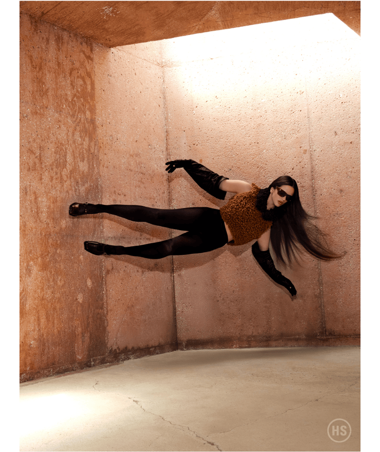 Top, pants, and boots ALAÏA Earrings EÉRA Rings PANCONESI