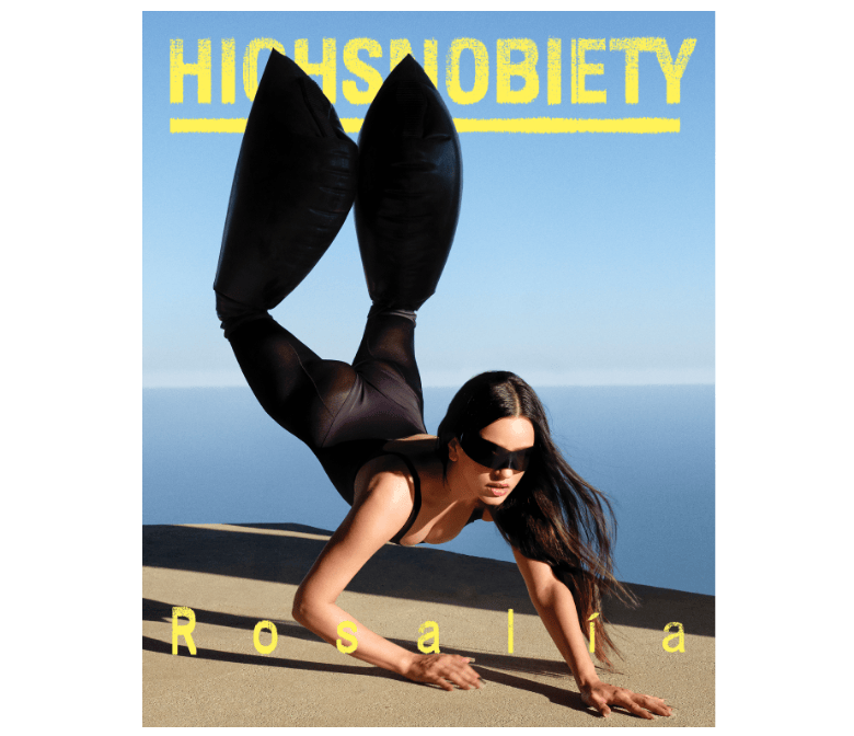 When I think of Rosalía, she’s at a fashion show, four years ago. The then-27-year-old is lounging in the front row at a Nike Olympic uniform unveiling just a few days ahead of NYFW. Virgil Abloh is on her left. Drake, on her right, is in a rare pair of Supreme sneakers (and mixing stacked gold and silver rings). Rosalía, or Rose, as her close friends call her exclusively, sits between them hunched over in a Marine Serre bodysuit.