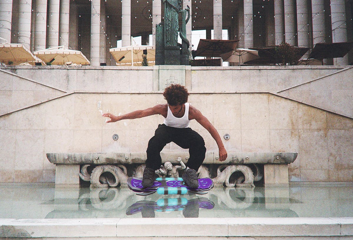In RTKFT’s vision, the city has been overtaken by alien invaders who monitor Parisians’ daily comings and goings from their command center atop the Eiffel Tower. The invaders have gone so far as to ban cafés, and now the people must take their city back the only way they know how: with a hoverboard-powered crew of skaters and community leaders.