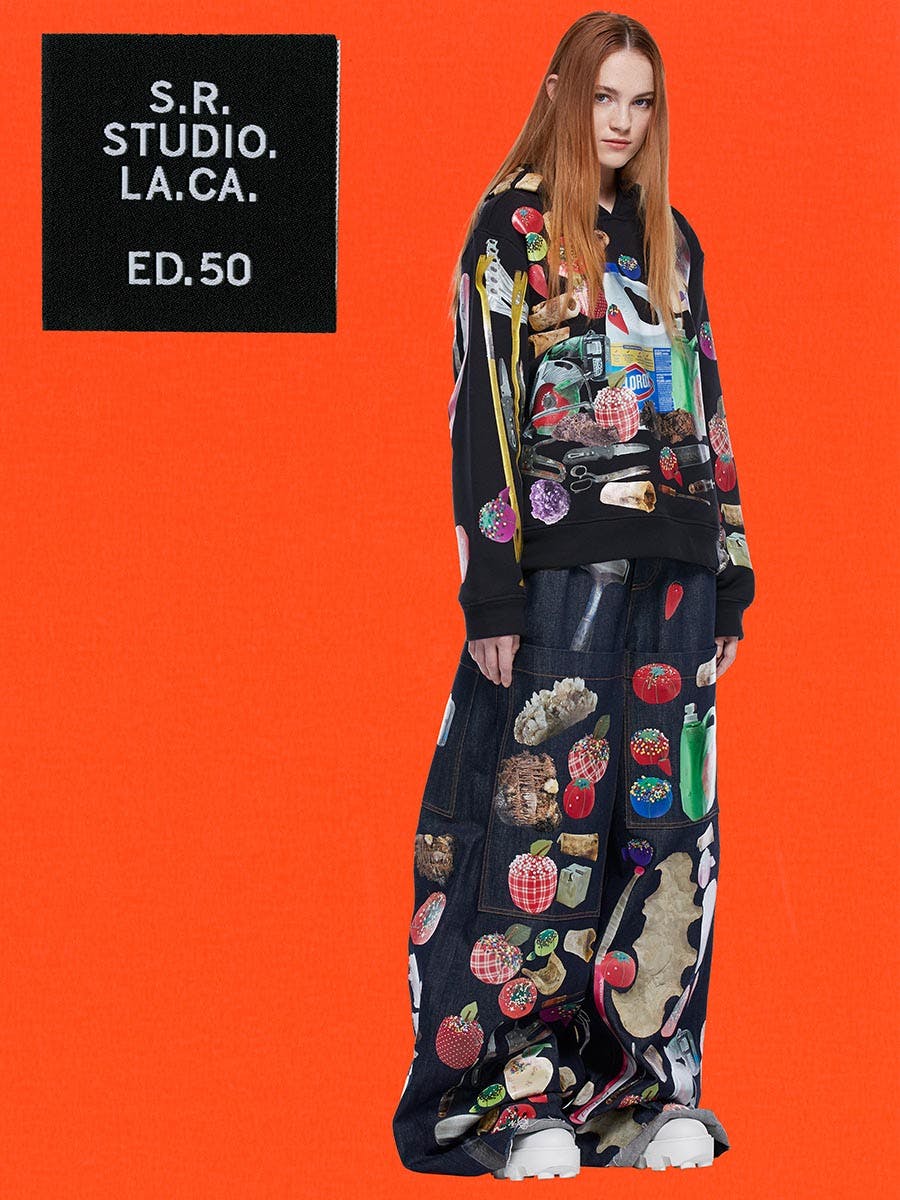The coinciding campaign for the fourth S.R. STUDIO. LA. CA. collection makes use of Ruby's fluorescent, hazard orange for a backdrop. The imagery features models donning styles from the assortment, in addition to photos of the brand's buttons and fabric labels.