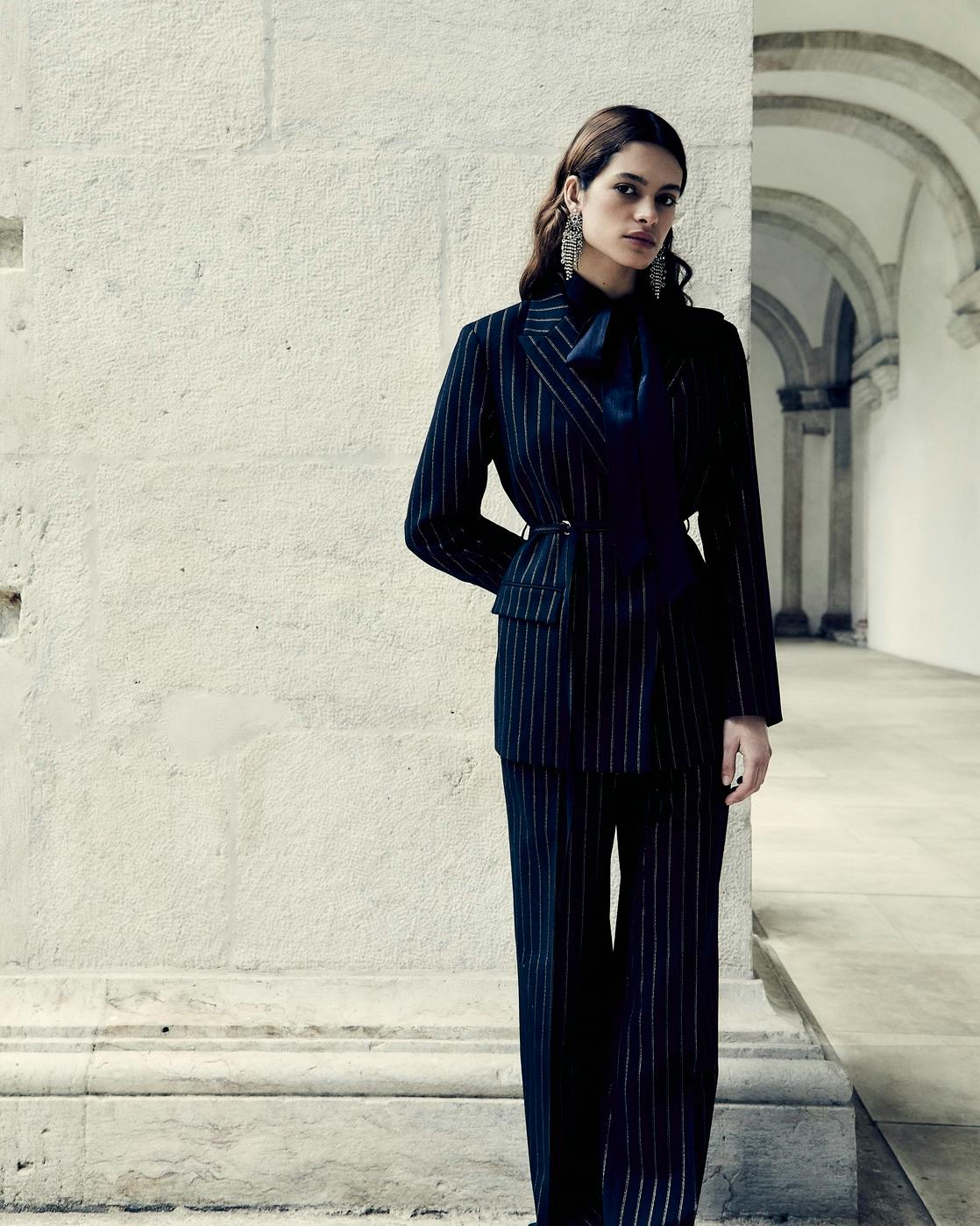 The same innovative takes on old favorites turn Scotch & Soda’s FW24 womenswear offerings into bona fide new classics. In an exquisitely tailored denim jacket, elegance meets androgyny as the cinched silhouette evokes a contemporary version of the peacoat. Elsewhere, a striking pinstripe suit is belted above the waist to create an exaggerated hourglass shape, its angles softened by the inclusion of a silken bow at the collar.