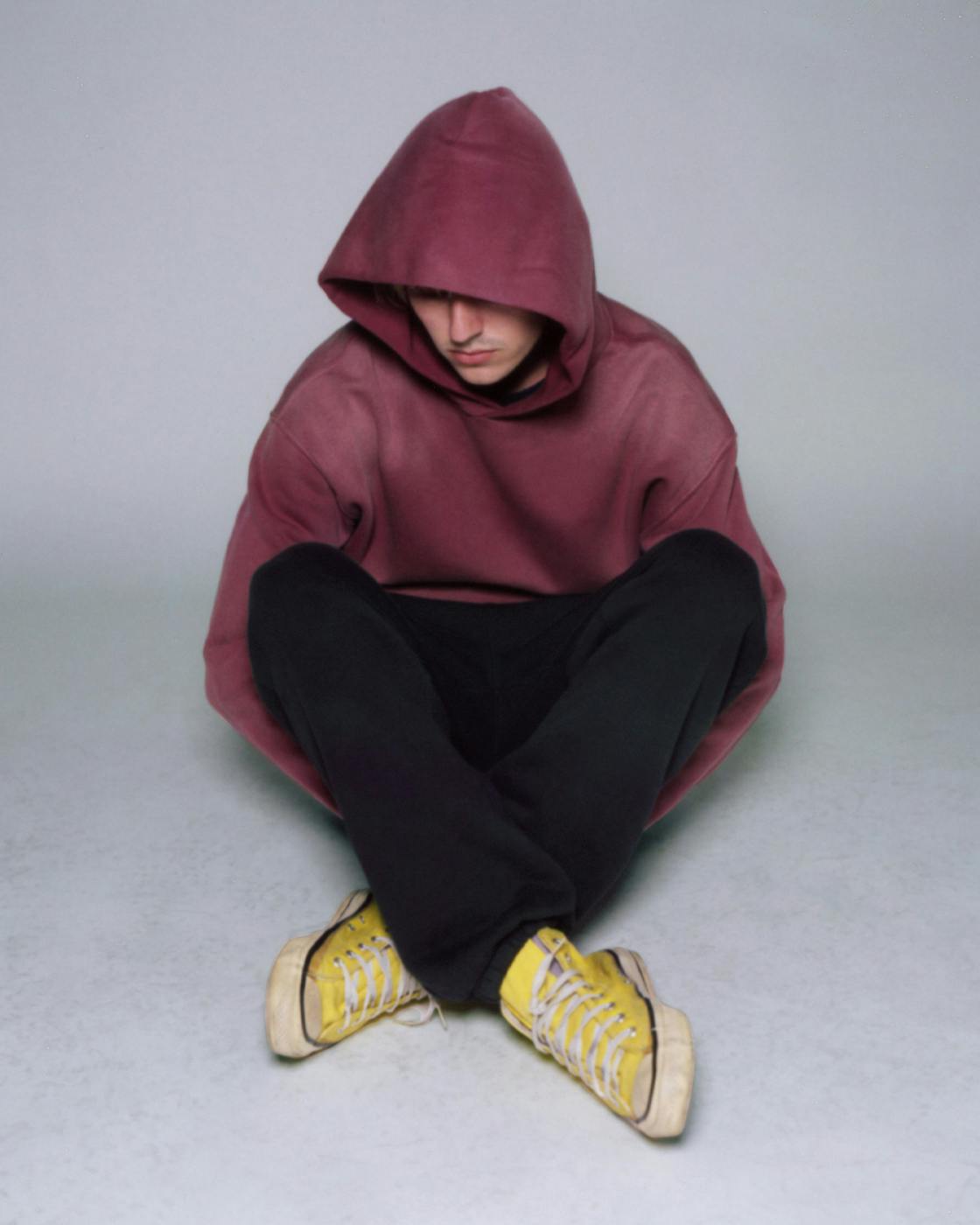 The remaining pieces from drop one — Denim jackets finely bleached to recall puffy clouds, custom-dyed hoodies cut short to fit just so, cashmere-blend beanies — give you an idea of what Seekings' oeuvre is all about.