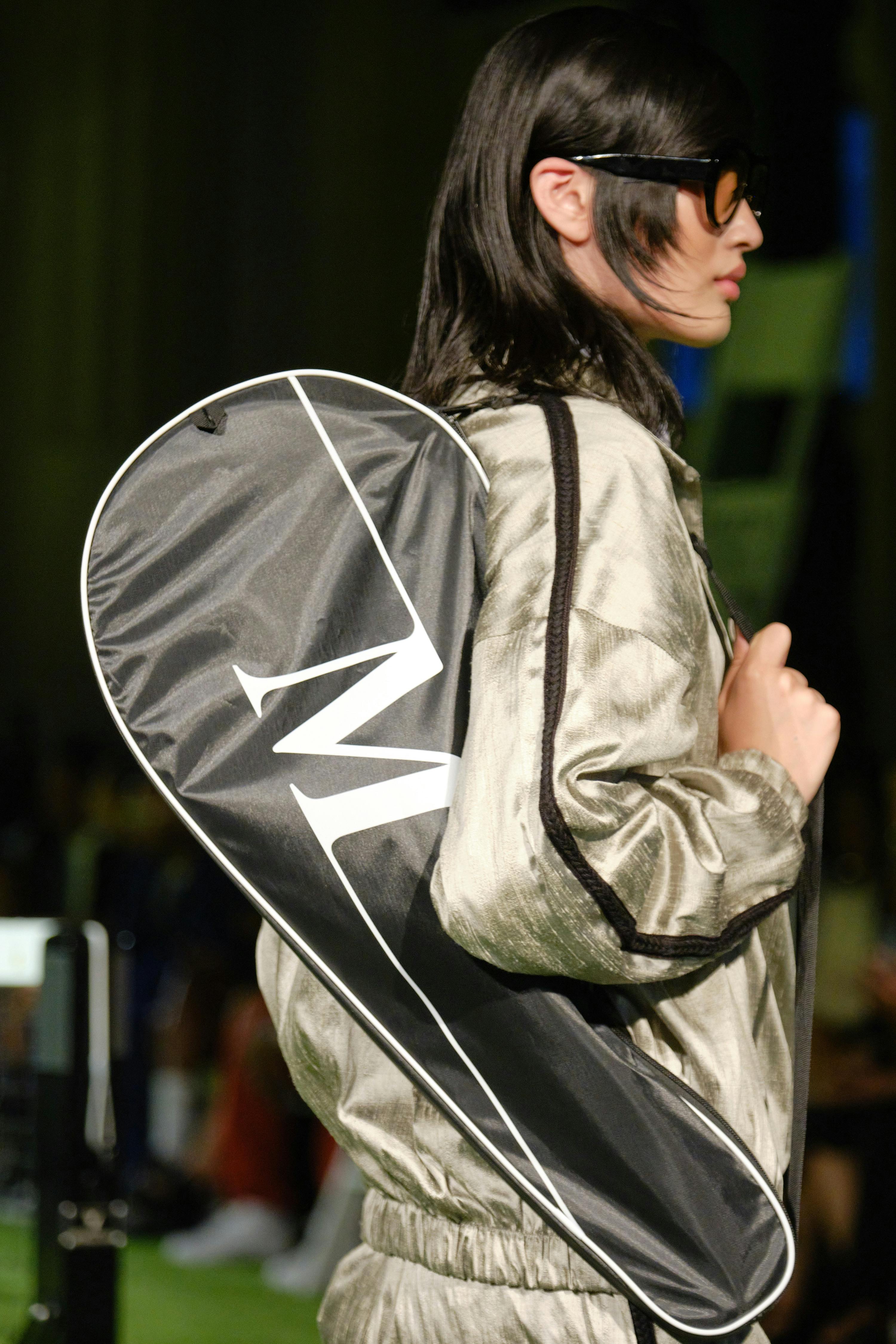 Set up like a tennis court, Mains' catwalk featured grass-like flooring equipped with a tennis net fixed in the middle. There was even a Mains scoreboard and those fuzzy green Mains tennis balls like the ones teased on the brand's Instagram page.
