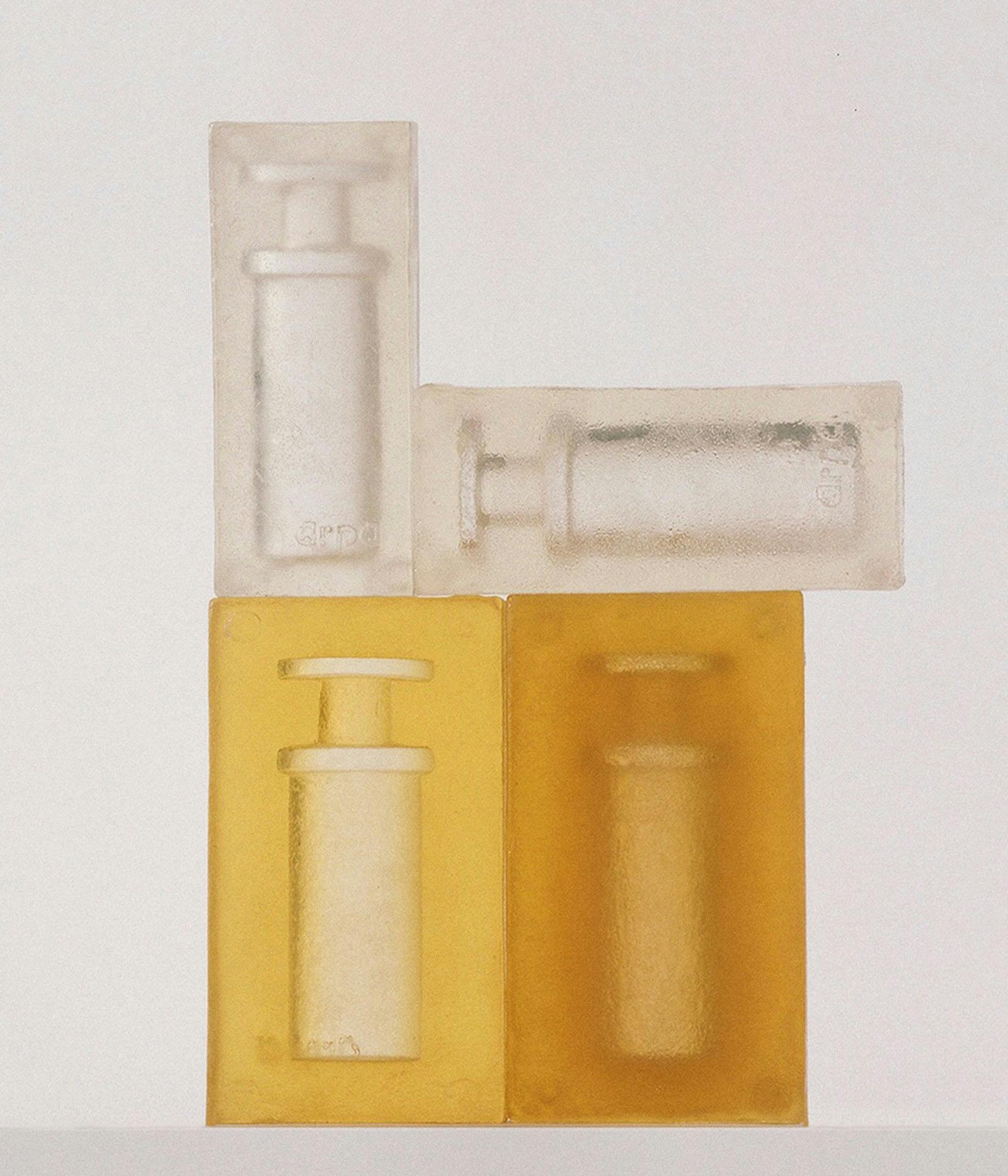 Fillion, the nose behind Aesop hits including Rozu and Karst, calls Arpa the “Institute of Synesthesia.” Synesthesia, which Fillion himself experiences, is a phenomenon in which one sense is felt through another. Those with synesthesia might report feeling the sounds of certain musical instruments as distinct tactile experiences, or interpret flavors as particular colors. Arpa recreates that sensation by bundling each of its scents with two additional elements: a vinyl record featuring tracks by composers such as Clément Varièras to stimulate the ears and a blown glass bottle by artist Jochen Holz to engage the eyes. The brand commissions additional original artworks, such as sculptures by Anicka Yi, to add textural components to its scents.