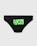 For our collaboration with the brand, we have honored Daley's ethos, creating a pair of black swimming trunks with green Highsnobiety Sports branding, but the back is where things really get fun. One of the graphics that is central to our Highsnobiety Sports collection, the back has a green "focus" print going across the wearers behind.