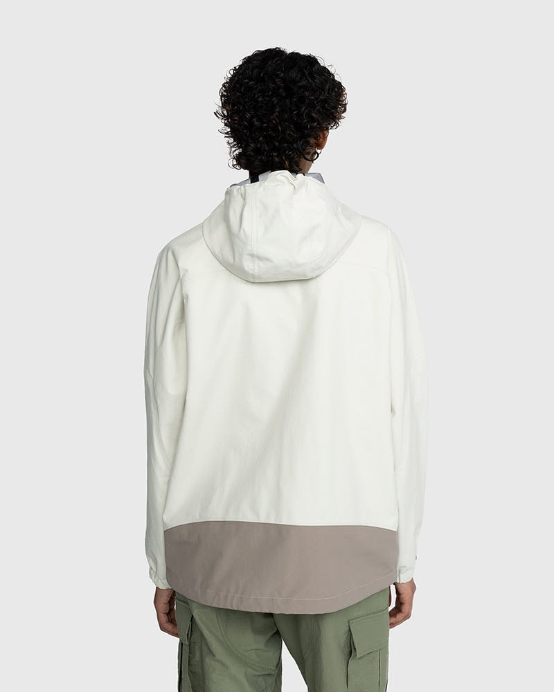 With a two-tone, color-blocked finish (available in either off-white with stone grey detailing or navy blue and beige), the more muted hues are a contrast to the jacket's sporty look and performance, making it versatile to style with more formal wares or with casual, wide-leg pants and Air Force 1s — as Central Cee did in our recent editorial.
