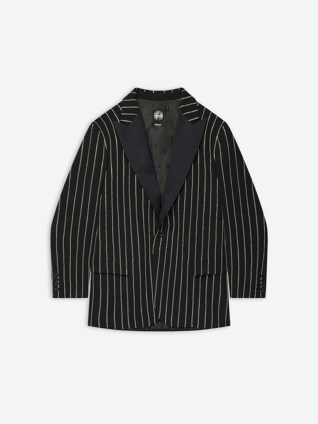 There's more where that came from. The collab's campaign imagery reveals additional items including a wool coat with an airbrushed bong on the back, tie-dye bottoms, and a suit embroidered with shiny beads. Clearly, Stüssy and DvN have New Year's Eve in mind.