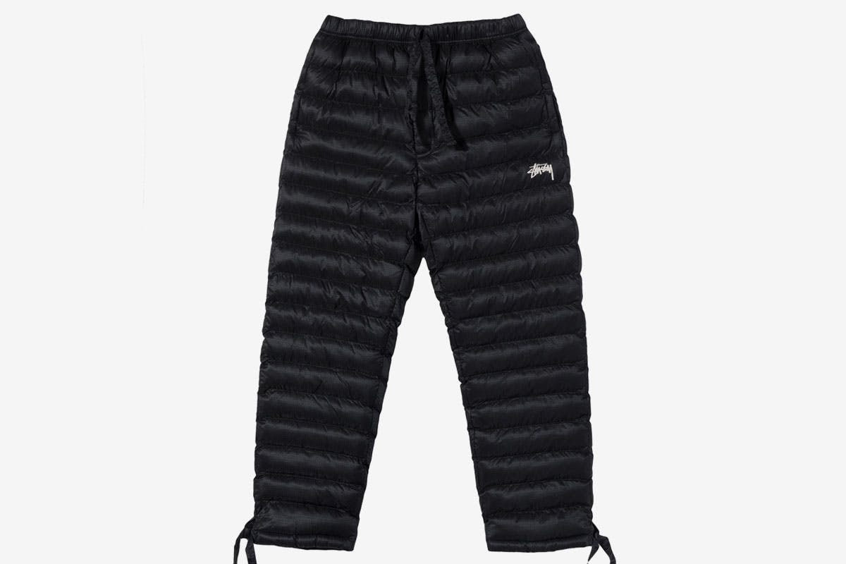 The campaign imagery shows various apparel and accessories, ranging from a sweatsuit set to an additional crewneck, a graphic T-shirt, a beanie, and a bucket hat. Leading the range, however, are a pair of padded pants and a matching skirt, which appear to be down-filled.