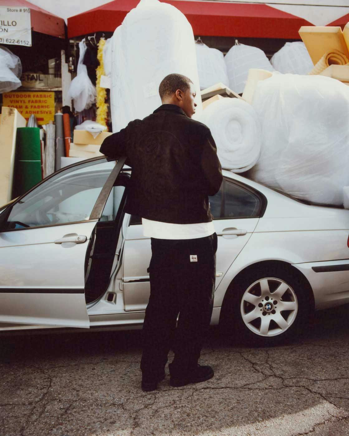 There's also some classic Stüssy fare that ought to do well (big logo bomber, anyone?) and some city-branded clothes that'll let everyone know whether you rep NYC or LA (Stüssy's seasonal campaign was shot in and around Los Angeles, if that makes a difference), plus a trench coat made of a solar-sensitive textile that shifts in the light.