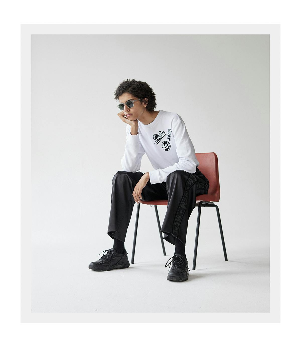 Along with the small-shades trend, we've also looked at other, more timeless styles, such as colored lenses, athletic-performance wear, OTT frames, acetate frames, and classic aviator styles. We've shot them below with some garms that complement the frame, lens, and design of the shades, and demonstrate how sunglasses are a key accessory in elevating your look.