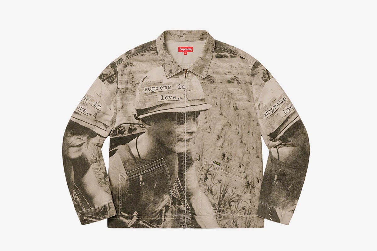 Key Pieces: The highly anticipated "Supreme is Love" jacket incorporates imagery used for The Smiths‘ Meat is Murder album. The original image was of U.S. Marine Corporal Michael Wynn during the Vietnam War. The iconic image saw “Make War Not Love” inscribed on Wynn's helmet. For FW19 Supreme has appropriated the image for this “supreme is love” zip-up jacket.