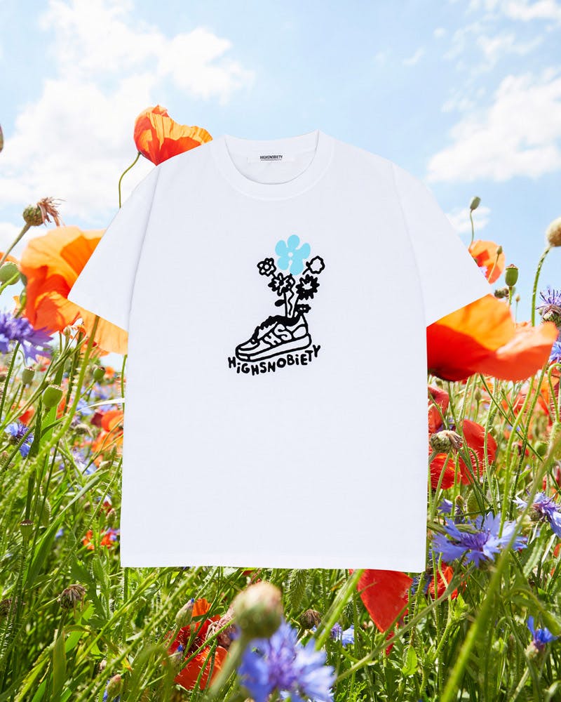 Editor’s Notes: This week marks the first days of spring in the Northern hemisphere, also known at the spring equinox. To celebrate the beginning of (hopefully) warmer climes, we're dropping a new graphic T-shirt, available exclusively on Highsnobiety's Instagram. The 100% cotton tees are made in Portugal and printed in Germany using our own cut-and-sew blanks embellished with an in-house floral sneaker graphic.