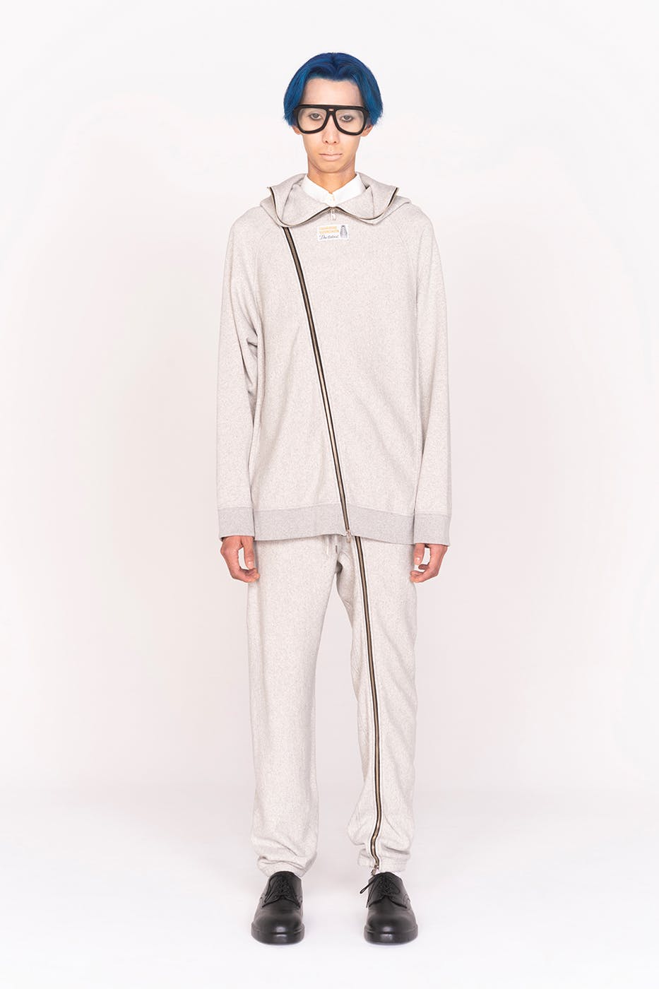 The effect is intentionally disorienting, carrying over to Miyashita's ankle-scraping hoodies and transforming zippered skirts. Proportions are practically ecclesiastical, with the lengthy one-pieces granting models the silhouette of clerical vestments.